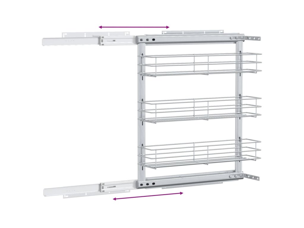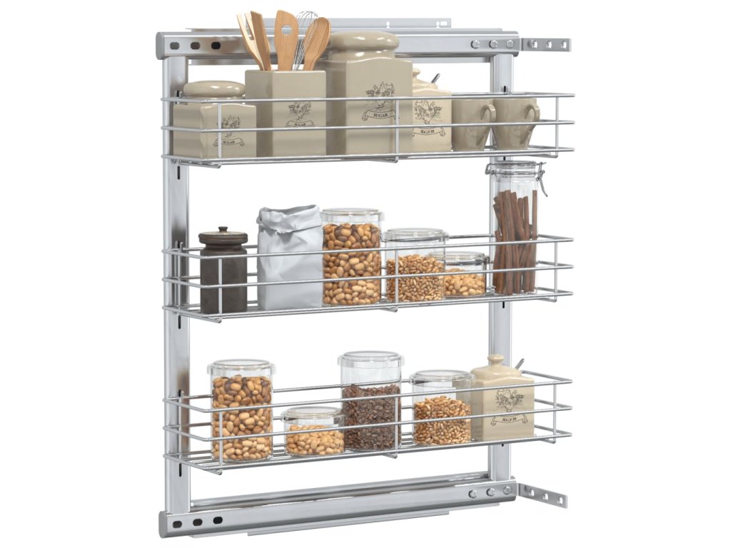 Náš vyťahovací drôtený kôš sa dá ľahko namontovať do kuchynskej skrinky pomocou pribaleného montážneho príslušenstva. Tri koše predstavujú jednoduché, ale praktické riešenie pre optimalizáciu úložného priestoru vo vašej kuchynskej skrinke.