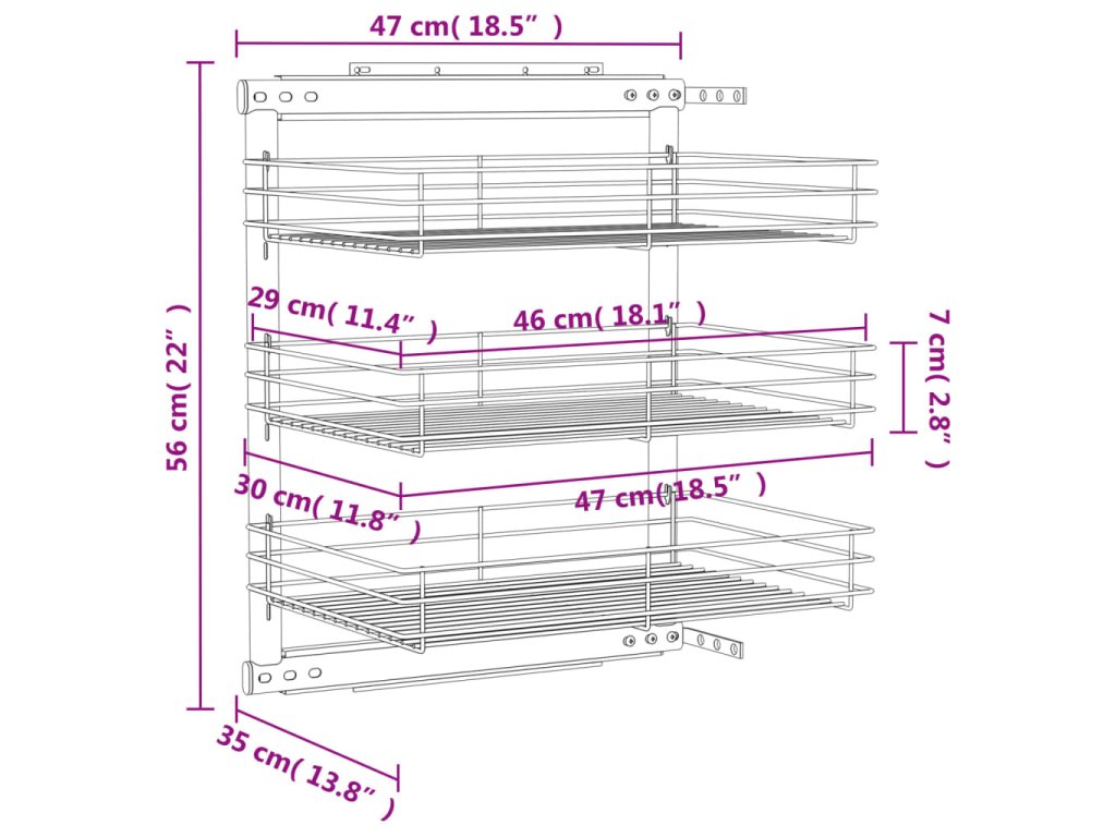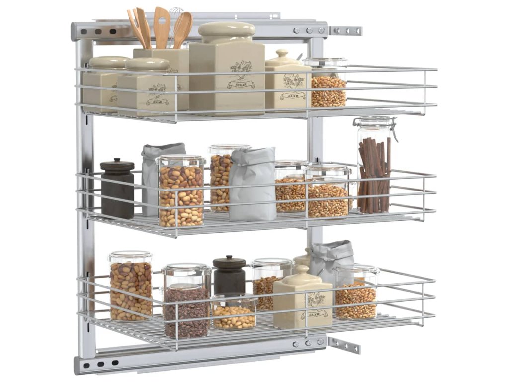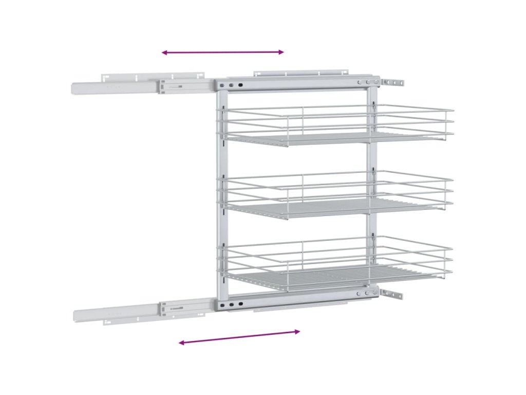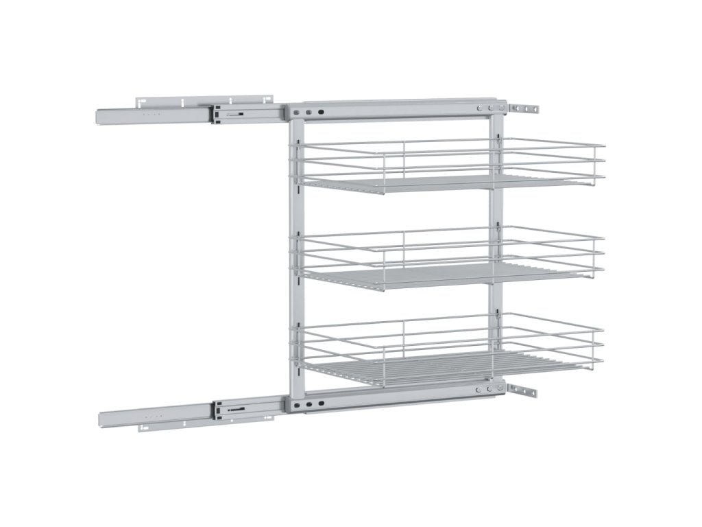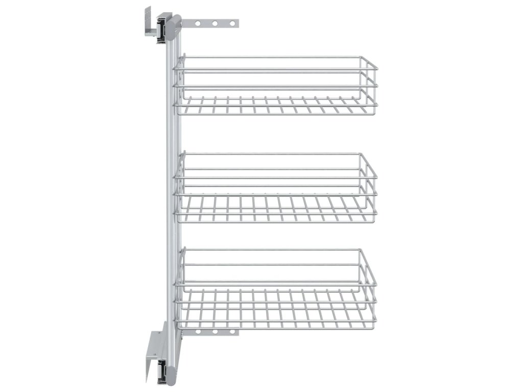 Náš vyťahovací drôtený kôš sa dá ľahko namontovať do kuchynskej skrinky pomocou pribaleného montážneho príslušenstva. Tri koše predstavujú jednoduché, ale praktické riešenie pre optimalizáciu úložného priestoru vo vašej kuchynskej skrinke.