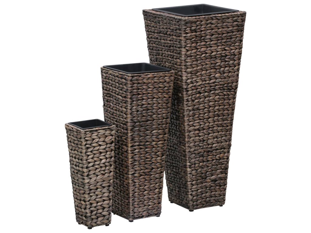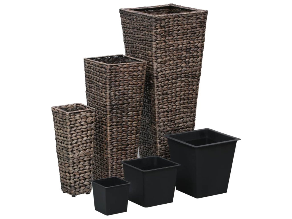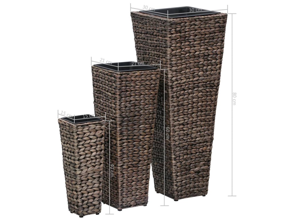 Pestujte a vystavujte svoje kvety a rastliny na obdiv v našej sade rustikálnych vyvýšených záhonov z vodného hyacintu! 3 kvetináče majú rôzne veľkosti, aby ste mohli naplno využiť svoju kreativitu a usporiadať si ich podľa svojich predstáv!