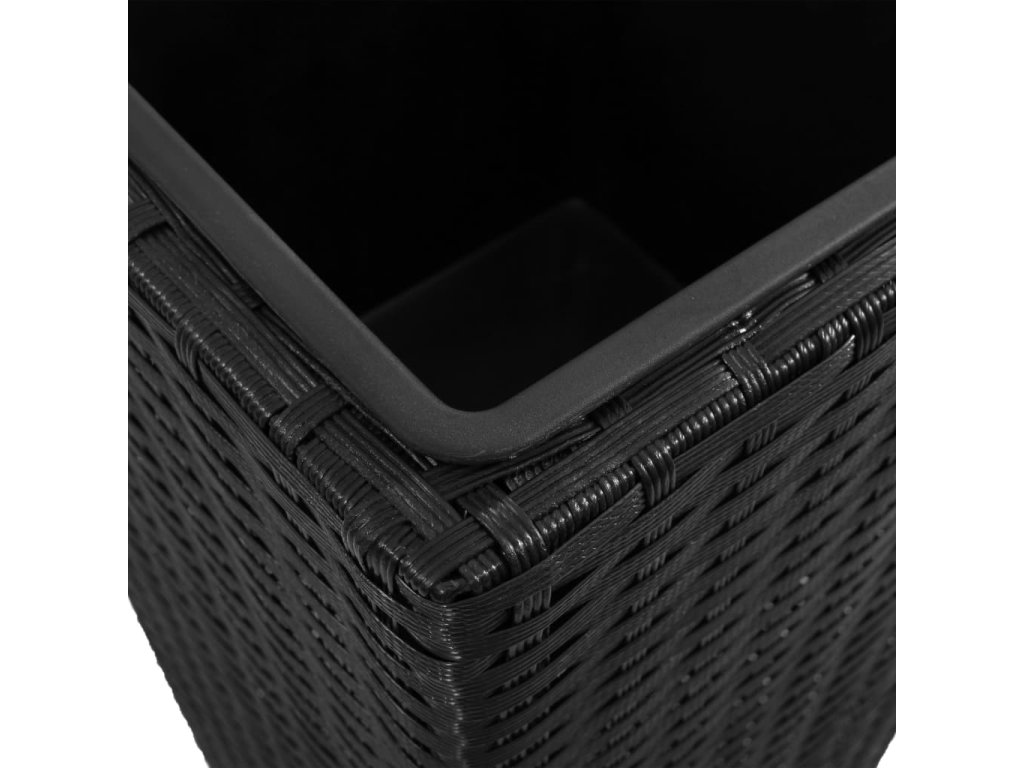 Kvetináče sú vyrobené z PE ratanu, ktorý si nevyžaduje žiadnu údržbu a je odolný voči poveternostným vplyvom, a preto sú ako stvorené do exteriéru. Oceľový rám im navyše dodáva potrebnú pevnosť a stabilitu. Kvetináče sa dajú jednoducho očistiť navlhčenou handričkou a obsahujú odnímateľnú vnútornú nádobu z plastu.
