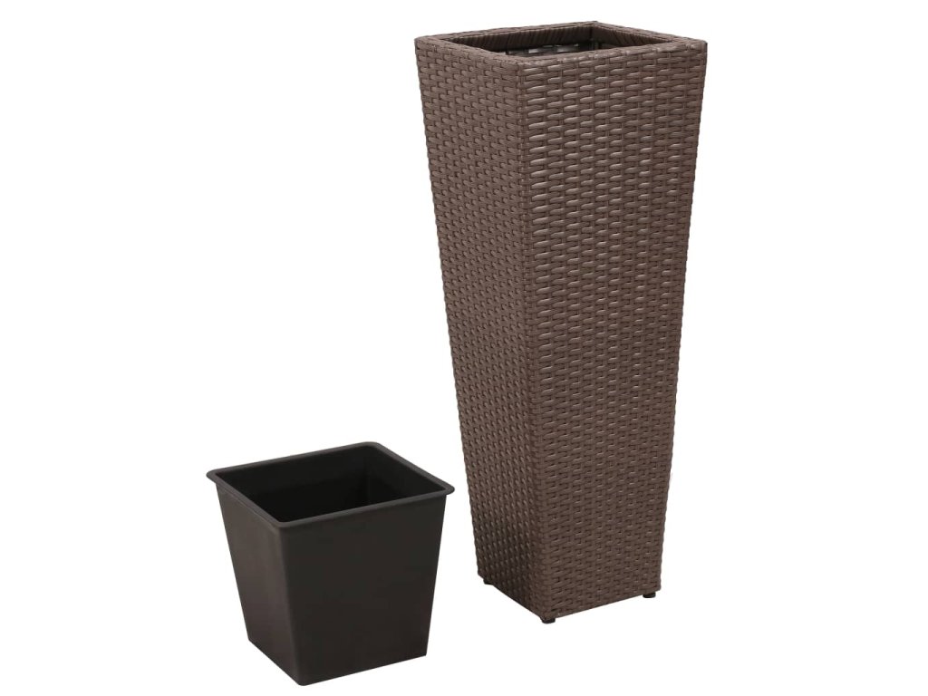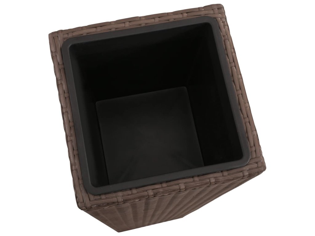 Kvetináče sú vyrobené z PE ratanu, ktorý si nevyžaduje žiadnu údržbu a je odolný voči poveternostným vplyvom, a preto sú ako stvorené do exteriéru. Oceľový rám im navyše dodáva potrebnú pevnosť a stabilitu. Kvetináče sa dajú jednoducho očistiť navlhčenou handričkou a obsahujú odnímateľnú vnútornú nádobu z plastu.