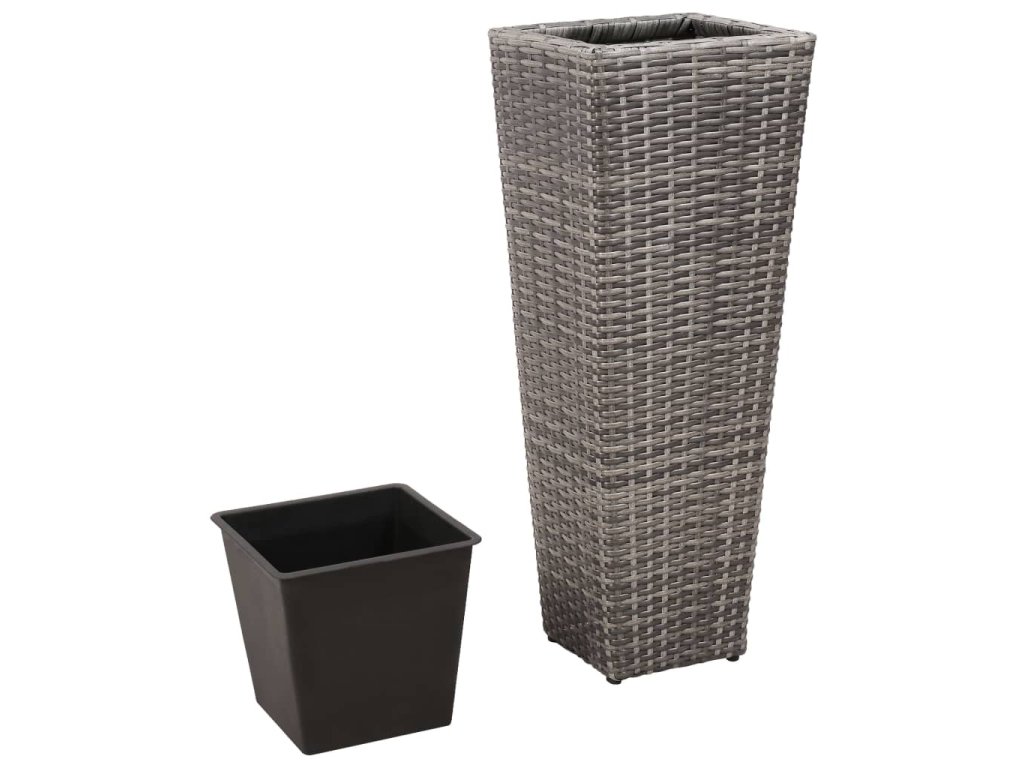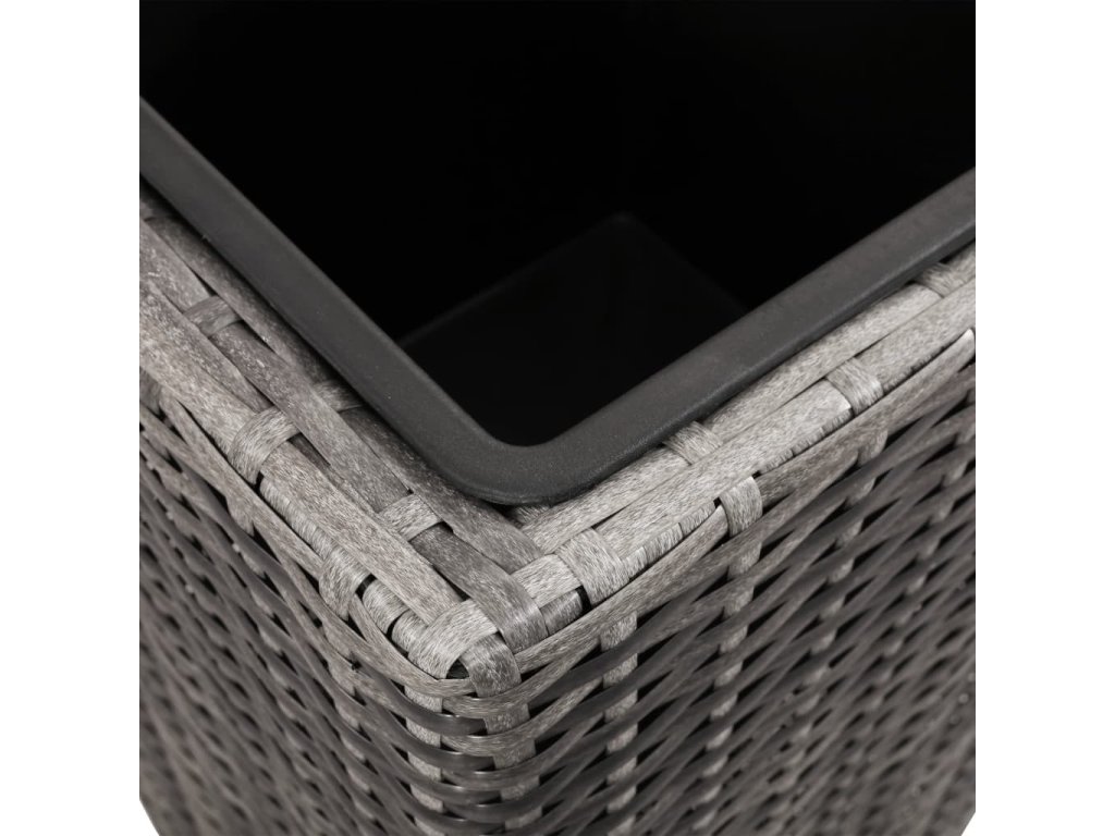 Kvetináče sú vyrobené z PE ratanu, ktorý si nevyžaduje žiadnu údržbu a je odolný voči poveternostným vplyvom, a preto sú ako stvorené do exteriéru. Oceľový rám im navyše dodáva potrebnú pevnosť a stabilitu. Kvetináče sa dajú jednoducho očistiť navlhčenou handričkou a obsahujú odnímateľnú vnútornú nádobu z plastu.