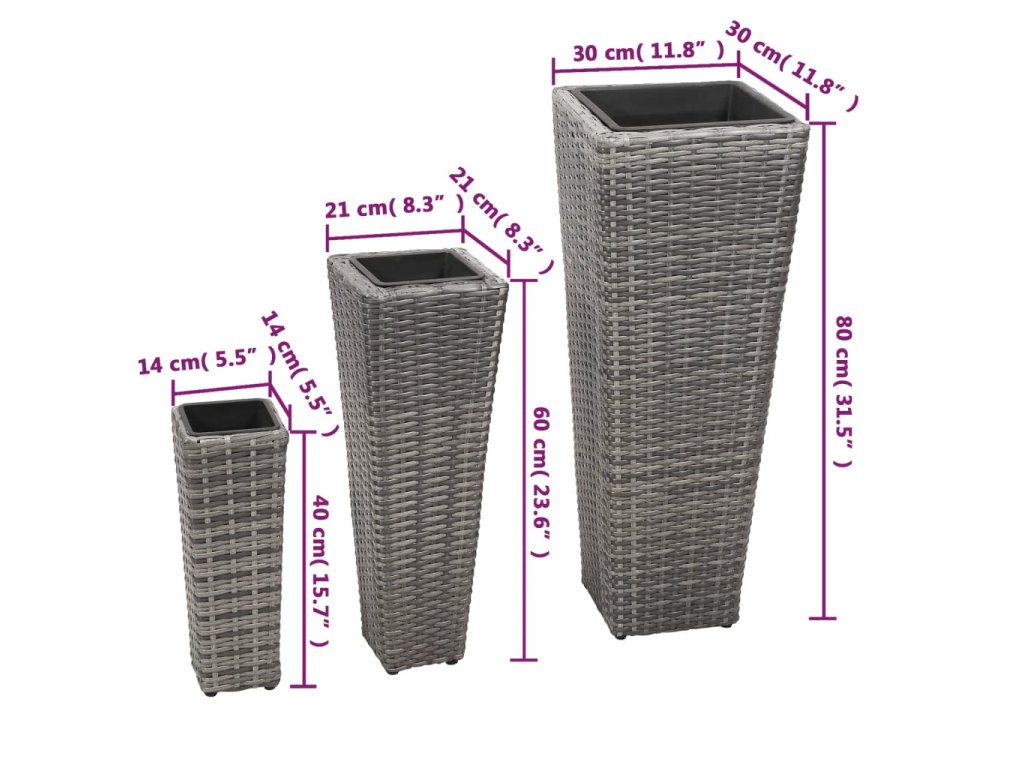 Pestujte a vystavujte svoje kvety a rastliny na obdiv v našej sade polyratanových vyvýšených záhonov! 3 kvetináče majú rôzne veľkosti, aby ste mohli naplno využiť svoju kreativitu a usporiadať si ich podľa svojich predstáv!