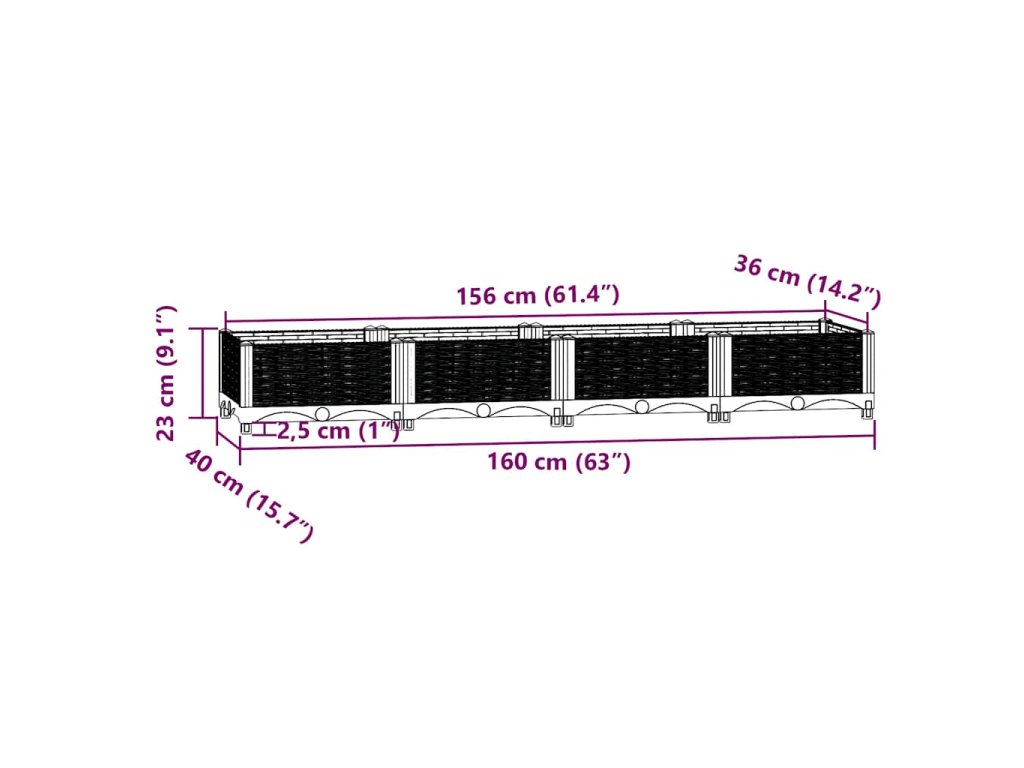Tento kvetináč je vyrobený z polypropylénu, vďaka čomu je pevný, odolný a vhodný na každodenné vonkajšie použitie. Záhradný kvetináč je dostatočne hlboký a široký, aby pojal veľké množstvo pôdy a poskytuje dostatok priestoru pre vaše rastliny, zeleninu, bylinky a kvety. Vytvorte nádherné prostredie pre rastliny pomocou tohto elegantného záhonu!
