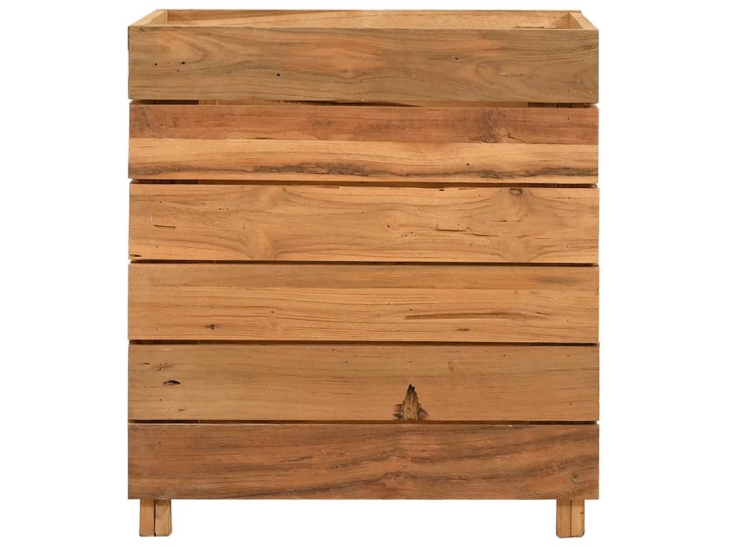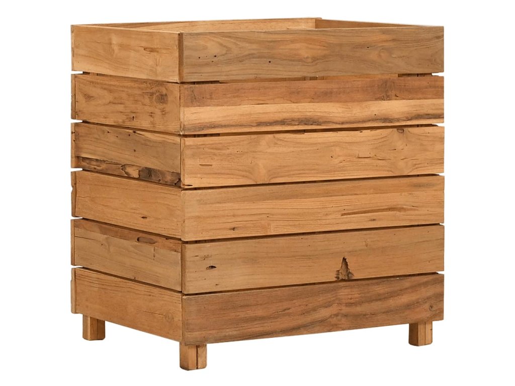 Tento kvetináč je vyrobený z recyklovaného tíkového dreva, vďaka čomu je naozaj robustný a trvácny. Vďaka krásnej textúre dreva je každý kus nábytku jedinečný a trochu odlišný od ostatných. Štyri drevené nohy v spodnej časti prinášajú mimoriadnu stabilitu. Spodná časť kvetináča obsahuje oceľový držiak, na ktorý si môžete poukladať kvetináče. Výrobok sa okrem toho jednoducho montuje.
