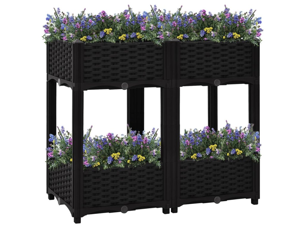 Tento kvetináč s 2 policami je vyrobený z polypropylénu, vďaka čomu je pevný, odolný a vhodný na každodenné vonkajšie použitie. Záhradný kvetináč je dostatočne hlboký a široký, aby pojal veľké množstvo pôdy a poskytuje dostatok priestoru pre vaše rastliny, zeleninu, bylinky a kvety. Vytvorte nádherné prostredie pre rastliny pomocou tohto elegantného záhonu!