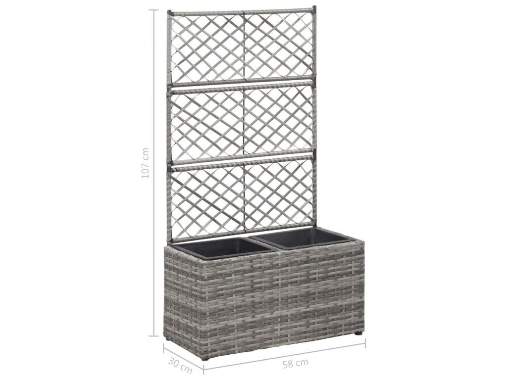 Kvetináč s mriežkou má dve priestranné nádoby, a preto sa doň zmestí veľké množstvo zelených rastlín a kvetov. Zabudovaná mriežka poslúži ako vhodná opora pre rôzne popínavé rastliny a keď bude pokrytá nádhernými kvetmi, vytvorí v záhrade krásny dekoratívny efekt.