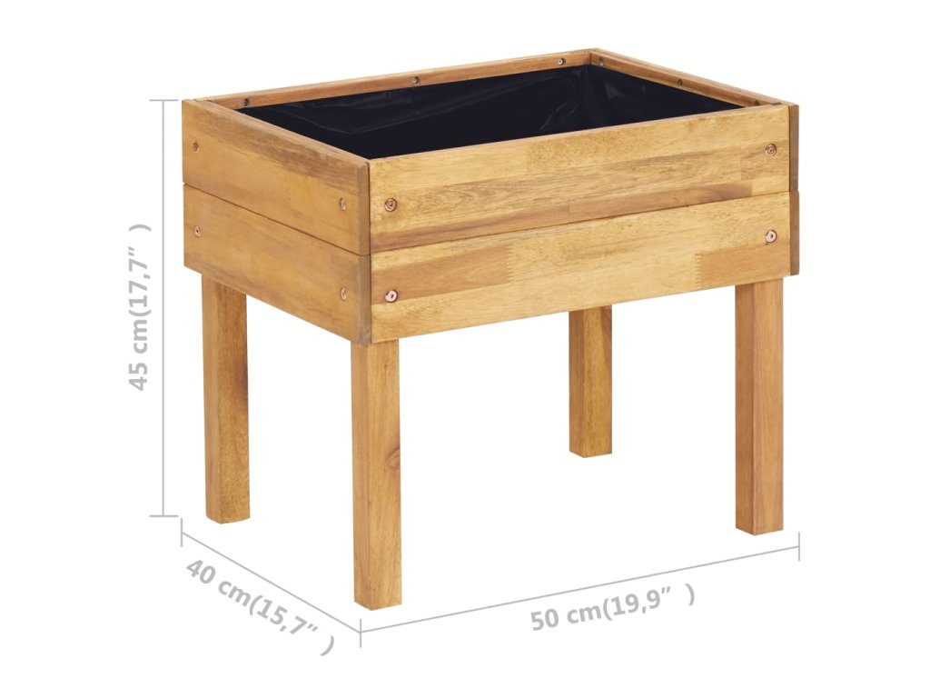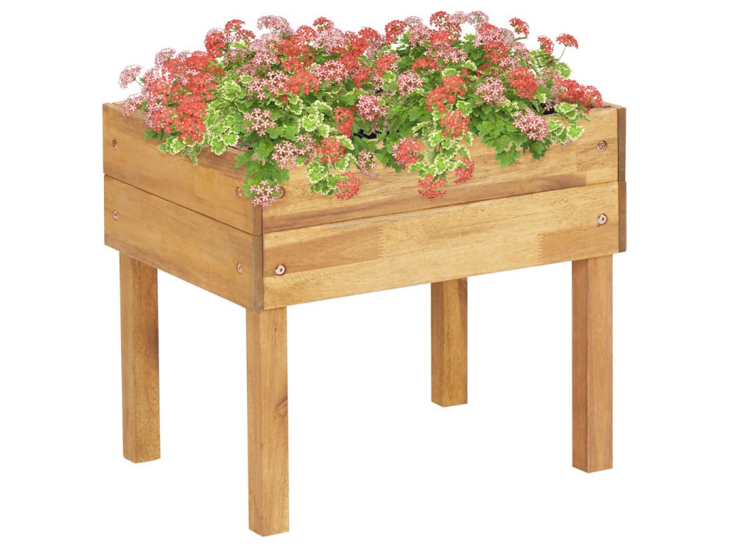 Vyvýšený kvetináč je vyrobený z masívneho akáciového dreva, ktoré má jemnú olejovú povrchovú úpravu. Vďaka tomu má bohatú prirodzenú farbu a je odolný voči poveternostným vplyvom. Kvetináč má nenápadný, rustikálny dizajn a dodá prírodný štýl do vášho vonkajšieho obytného priestoru.