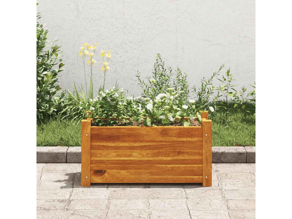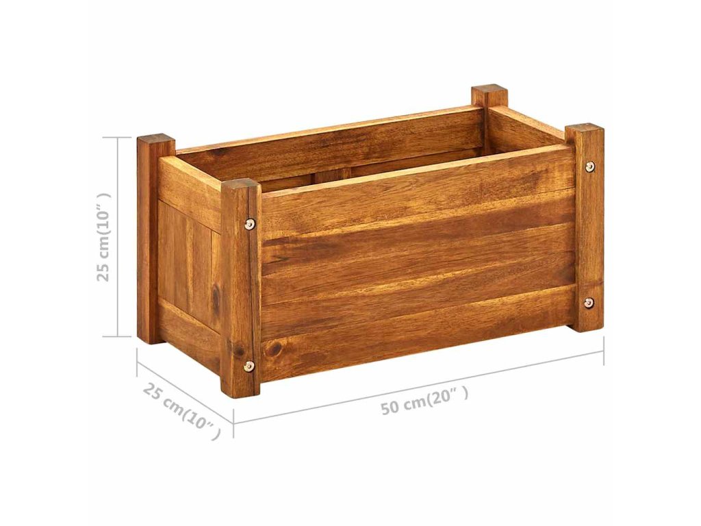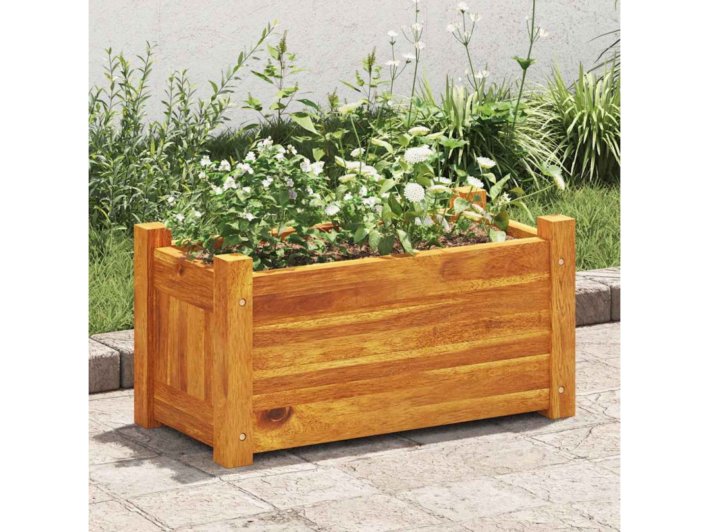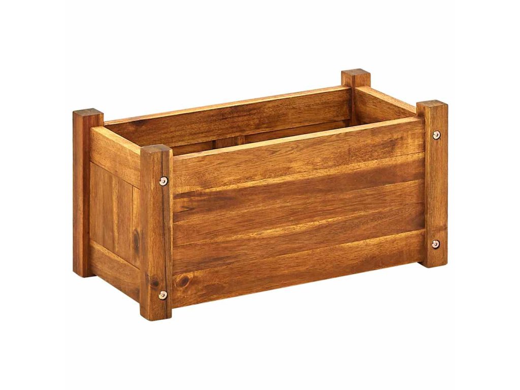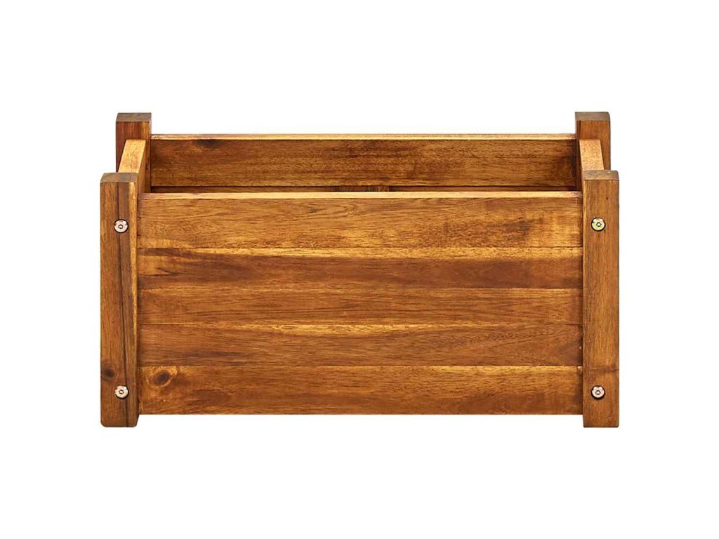 Kvetináč je vyrobený z akáciového dreva prvotriednej kvality, a tak je skutočne pevný a odolný. Kvetináč je okrem toho ošetrený olejovým náterom, ktorý drevu dodáva príjemnú farbu v rustikálnych tónoch. Spodná časť kvetináča pozostáva z latiek, a tak prepustí prebytočnú vodu, no zároveň zabráni tomu, aby sa spolu s ňou vysypala aj zemina.
