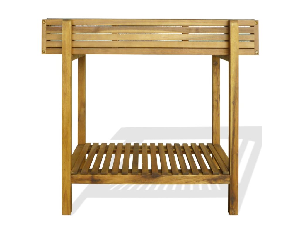 Kvetináč má nenápadný rustikálny dizajn a do vašich vonkajších priestorov vnesie nádych prírodnej atmosféry. Kvetináč poskytuje množstvo priestoru na zasadenie kvetov a rastlín. Keď všetko rozkvitne, stane sa z neho neprehliadnuteľná súčasť vašej záhrady alebo dvora. Polička v spodnej časti poslúži na odkladanie záhradného náradia, ktoré tak budete mať vždy poruke.
