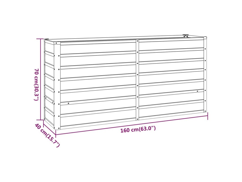 - Pevný rám: Vývýšený záhon má ceľový rám a vnútorné oporné držiaky, ktoré zaručujú potrebnú pevnosť a stabilitu.