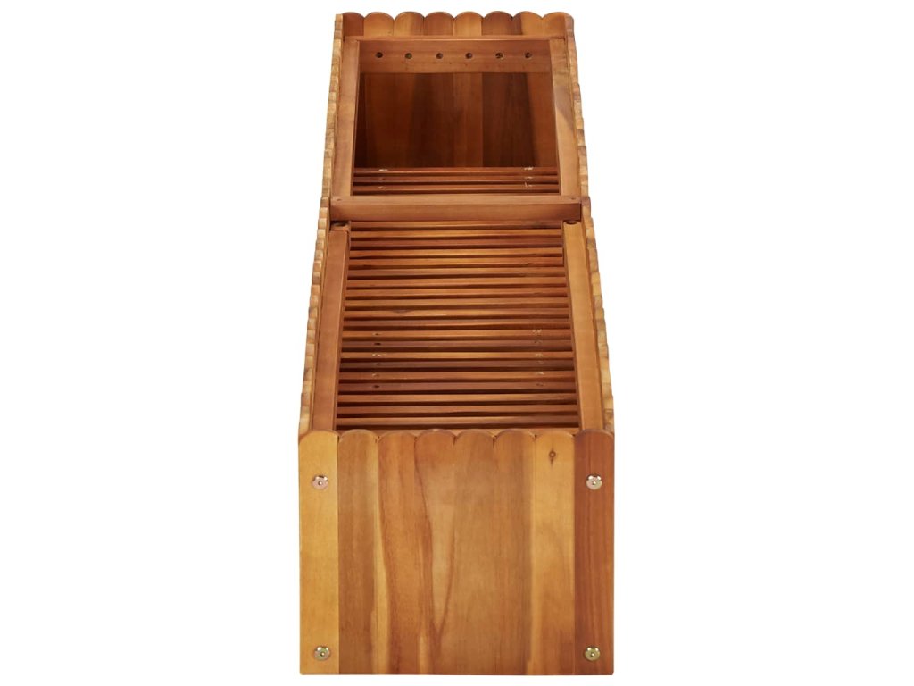 Kvetináč má nenápadný rustikálny dizajn a do vašich vonkajších priestorov vnesie nádych prírodnej atmosféry. Kvetináč je vyrobený z pevného a robustného akáciového dreva, vďaka čomu je odolný voči poveternostným vplyvom a vhodný do exteriéru. Spodná časť kvetináča pozostáva z latiek, a tak prepustí prebytočnú vodu, no zároveň zabráni tomu, aby sa spolu s ňou vysypala aj zemina.
