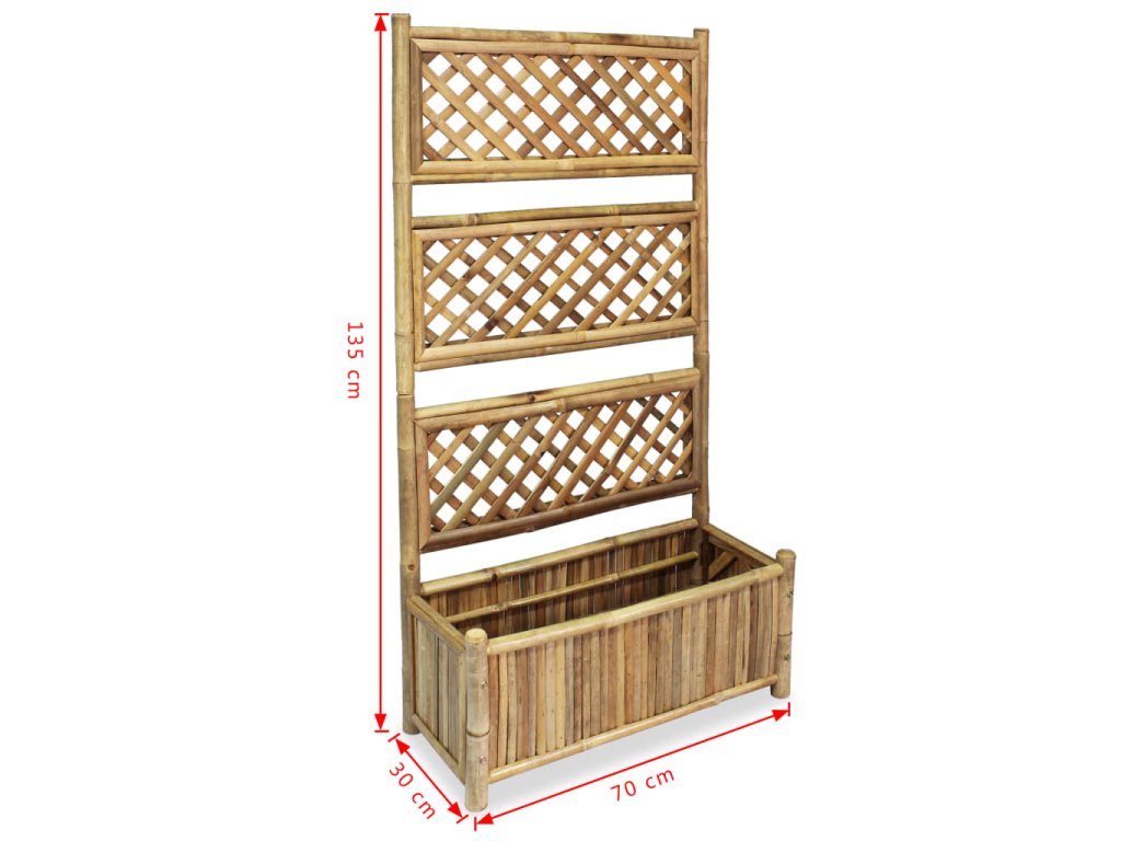 Kvetináč je vyrobený z trvácneho bambusu, ktorý je odolný voči poveternostným vplyvom a do vašich vonkajších priestorov vnesie nádych tropickej atmosféry. Má zvislý dizajn, a tak nezaberie veľa miesta. Montáž je jednoduchá.