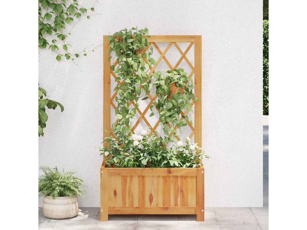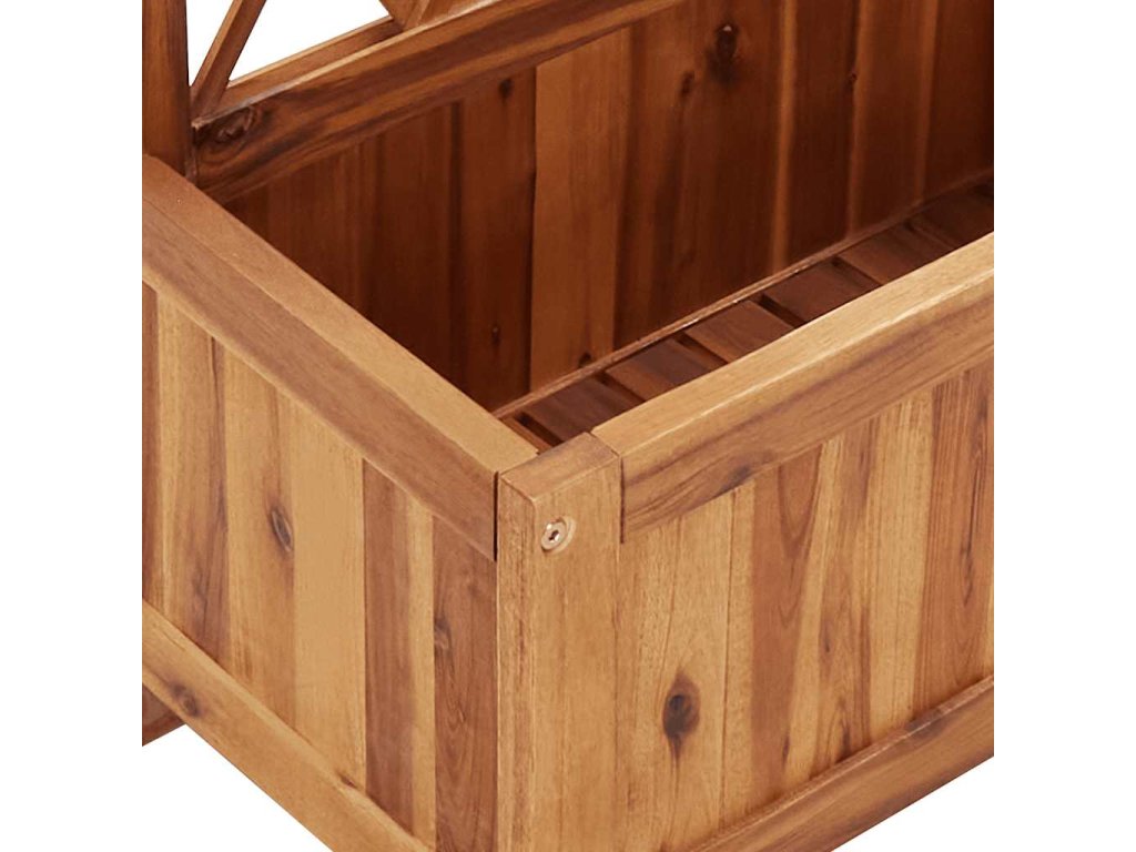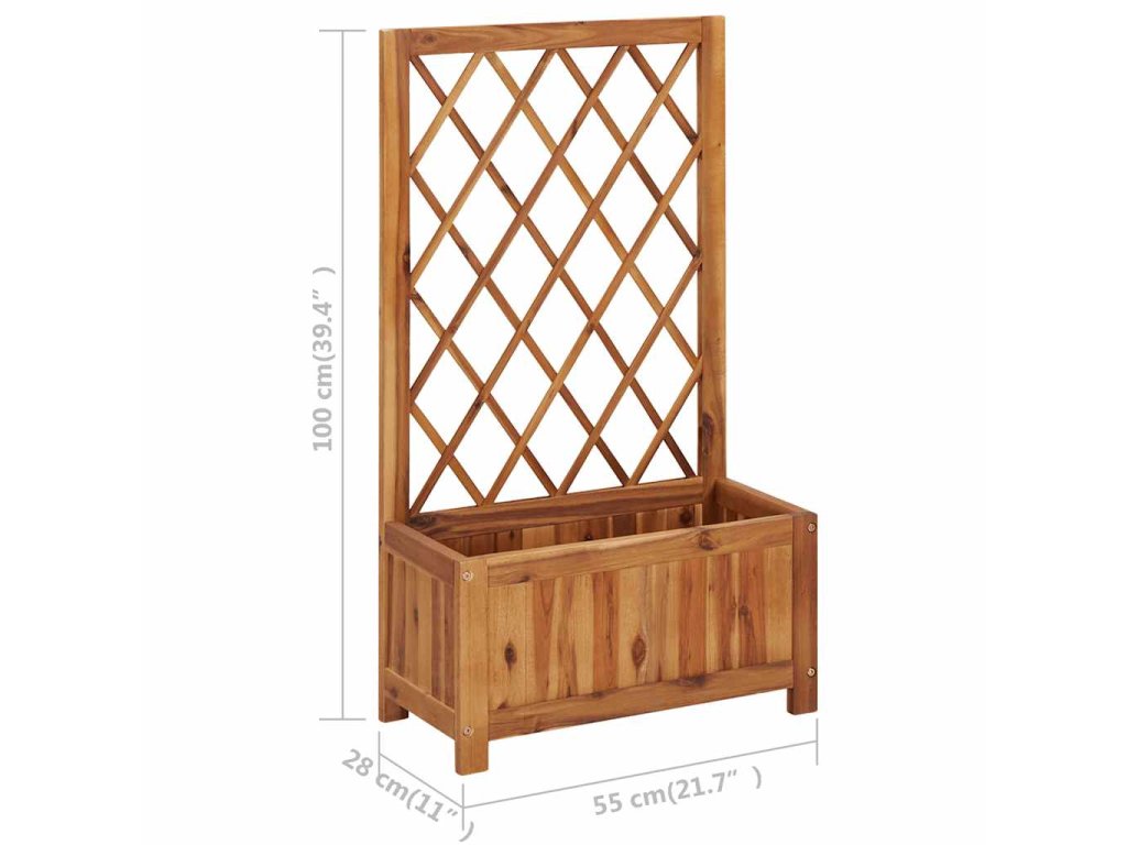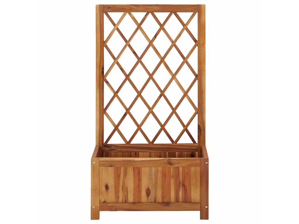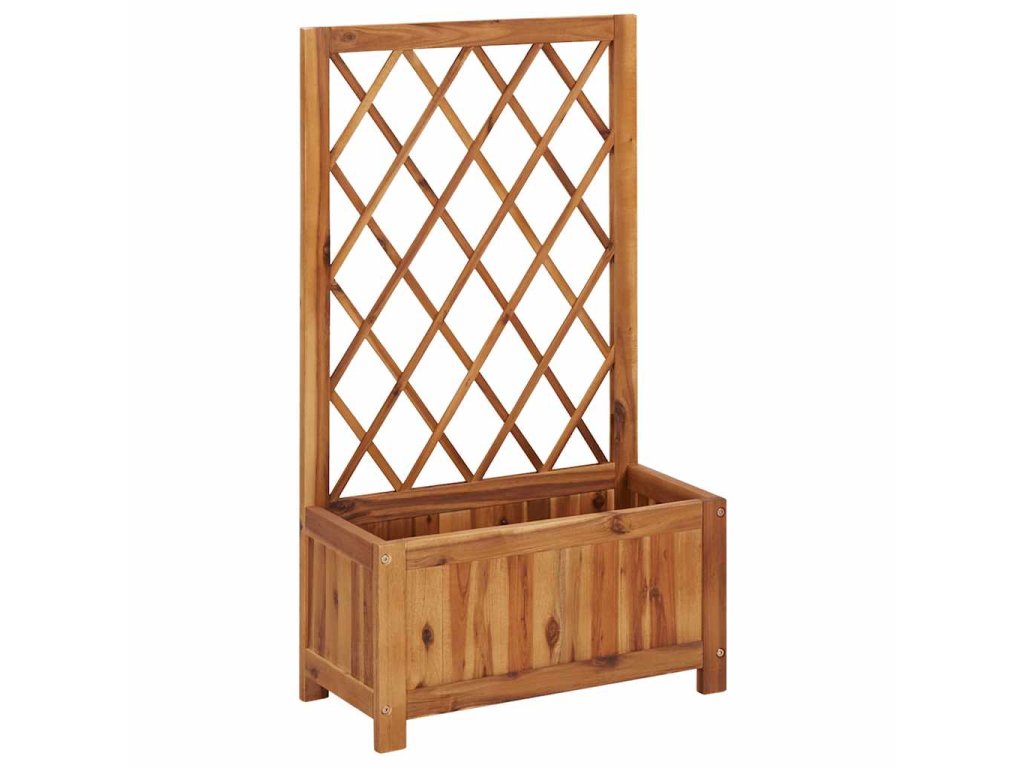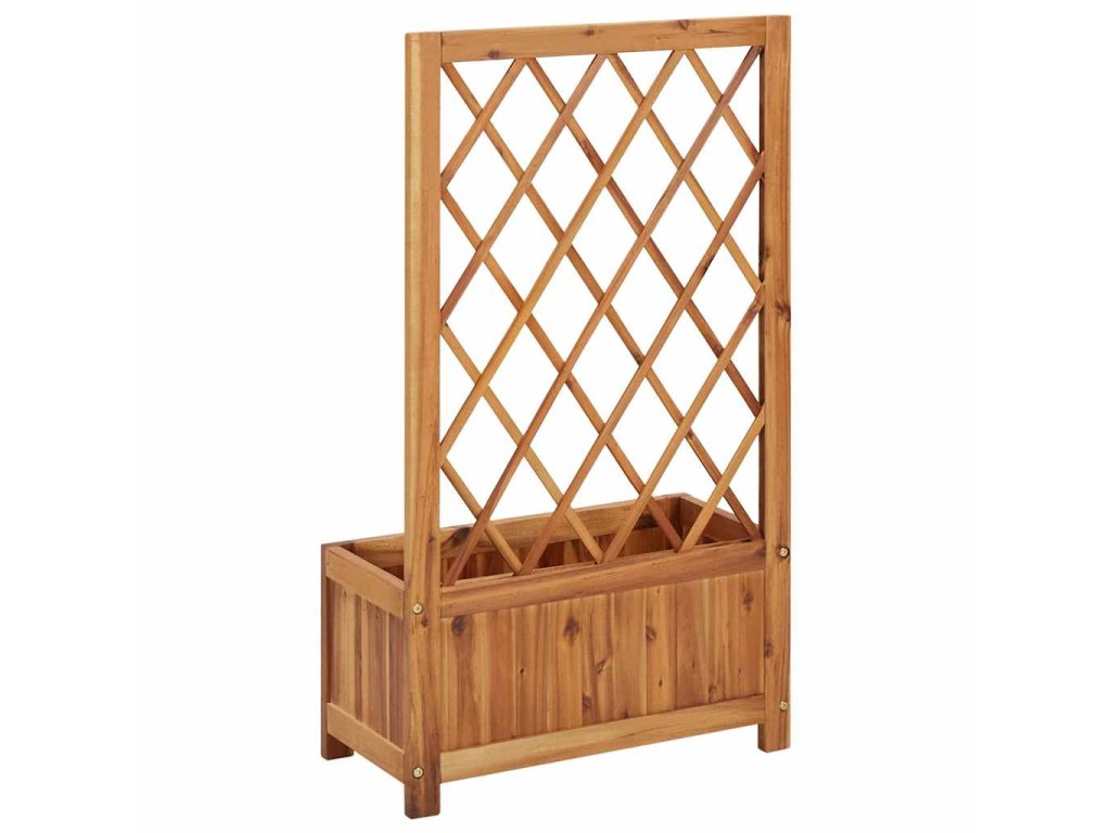 Kvetináč je vyrobený z masívneho akáciového dreva, ktoré bolo ošetrené svetlým olejovým náterom, aby vynikla jeho sýta prirodzená farba a aby bolo odolné voči poveternostným vplyvom. Kvetináč má nenápadný rustikálny dizajn a dodá vášmu vonkajšiemu obytnému priestoru prírodný nádych. Záhradný kvetináč má veľký box na kvetiny, do ktorého sa zmestí značné množstvo rastlín a kvetov. Vstavaná mriežka poskytne priestoru nádherný, dekoratívny efekt, keď bude pokrytá krásnymi popínavými rastlinami. Upozorňujeme, že drevo je prírodný produkt a môže vykazovať nedokonalosti.