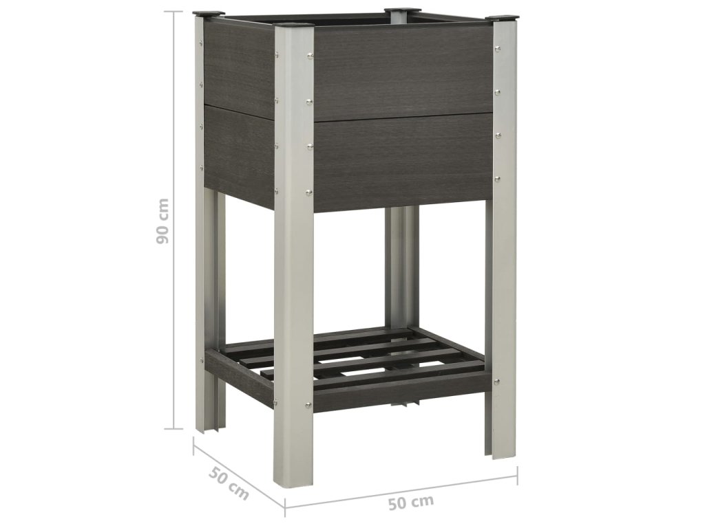 Kvetináč je vyrobený z drevoplastového kompozitu, vďaka čomu je pevný, odolný voči poveternostným vplyvom a vhodný na vonkajšie použitie. Záhradný kvetináč je vhodný na umiestnenie veľkého množstva pôdy a poskytuje dostatok priestoru pre vaše rastliny, zeleninu, bylinky a kvety. Otvorené dno ponúka skvelé vetranie. Polica navyše ponúka dostatok úložného priestoru pre kvetináče a náradie.