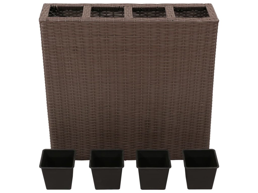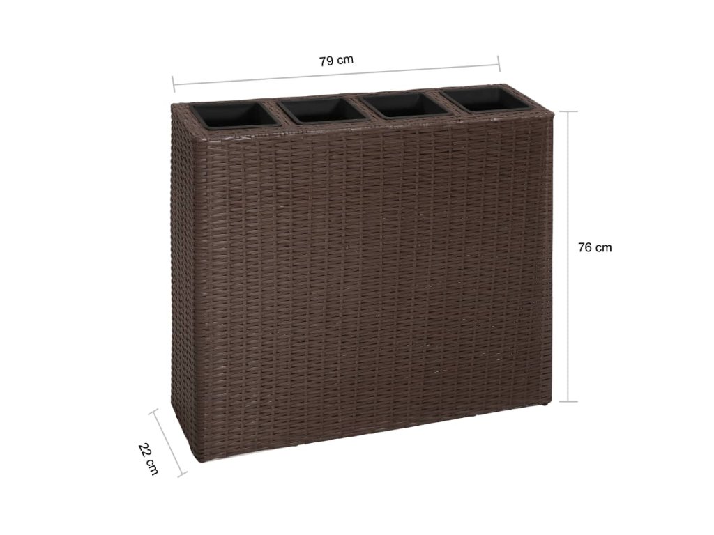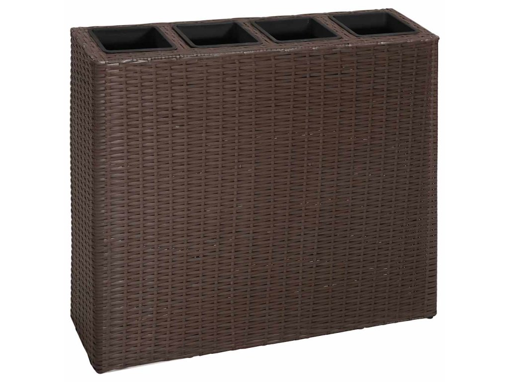 Tento kvetináč je vyrobený z trvácneho vodovzdorného ratanu a predstavuje perfektný doplnok do vašich vonkajších priestorov. Pevná pletená štruktúra vytvára hladký povrch a postará sa o výbornú stabilitu. V ratanovom kvetináči sa nachádzajú 4 plastové nádoby, vďaka čomu má sada kvetináčov naozaj dlhú životnosť. Do kvetináčov môžete zasadiť rôzne druhy živých zelených rastlín a kvetov. V balení sa nachádza 1 kvetináč a 4 odnímateľné nádoby rovnakej veľkosti.