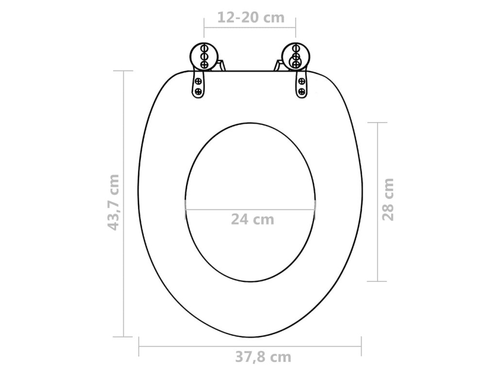 Poklop a sedadlo z MDF sa vyznačujú vysokou tuhosťou, tvrdosťou a pevnosťou. Vďaka pántom z extra pevnej a trvácnej zlatiny chrómu a zinku vám toto WC sedadlo vydrží naozaj dlho. WC sedadlo je vhodné na všetky bežné WC misy a šírka pántov sa dá nastaviť v rozmedzí od 12 do 20 cm. Dá sa jednoducho namontovať a ľahko sa čistí.