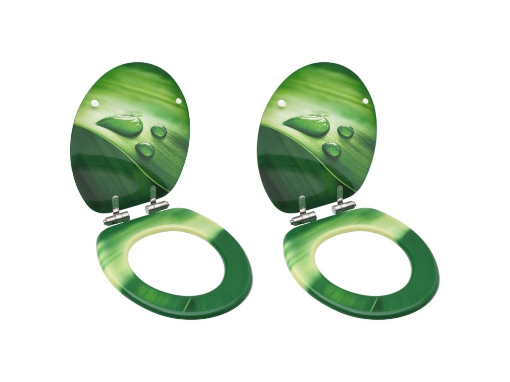 vidaXL WC sedadlá s poklopom s pomalým uzatváraním 2 ks MDF zelené dizajn s kvapkami