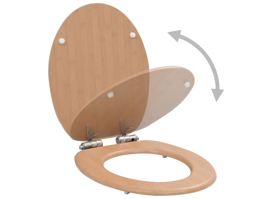 Poklop a sedadlo vyrobené z MDF sú mimoriadne pevné a odolné. Pánty sú vyrobené z extra pevnej zliatiny chrómu a zinku. WC sedadlo je navyše vybavené funkciou pomalého sklápania, a tak sa zatvára a otvára ticho a hladko, aby nebolo počuť zbytočný hluk a aby sa tým predĺžila jeho životnosť.