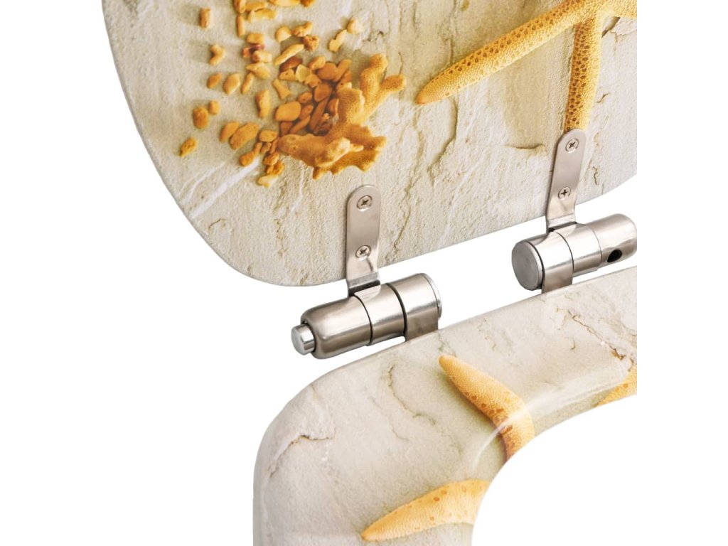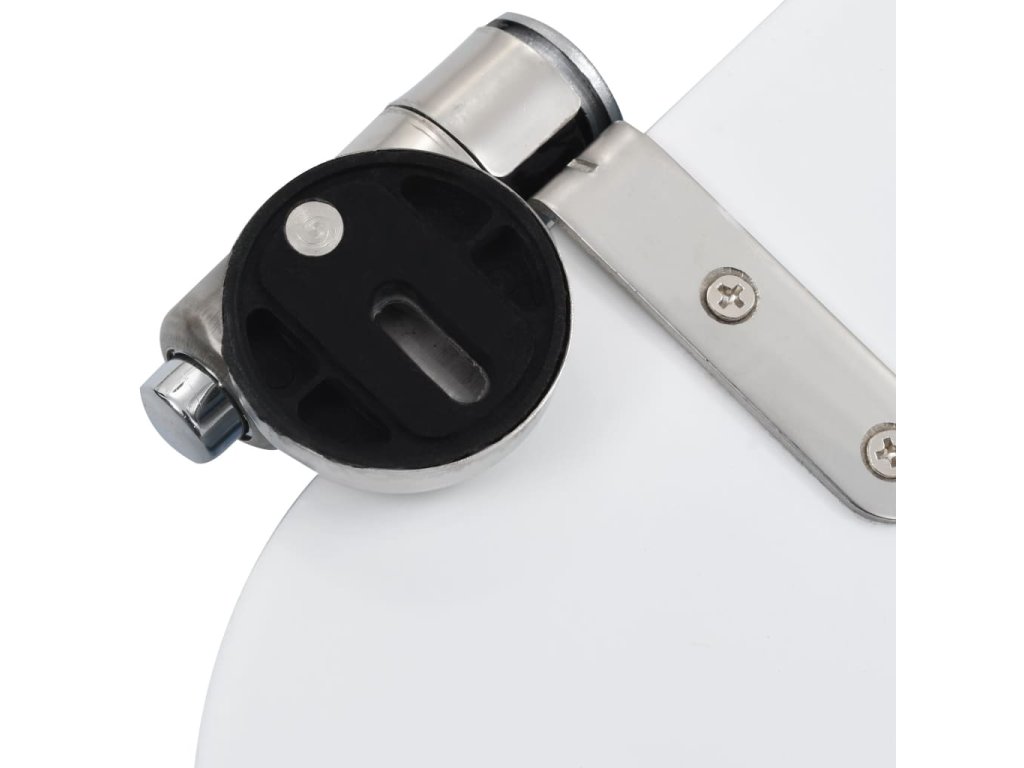 Poklop a sedadlo vyrobené z MDF sú mimoriadne pevné a odolné. Pánty sú vyrobené z extra pevnej zliatiny chrómu a zinku. WC sedadlo je navyše vybavené funkciou pomalého sklápania, a tak sa zatvára a otvára ticho a hladko, aby nebolo počuť zbytočný hluk a aby sa tým predĺžila jeho životnosť.