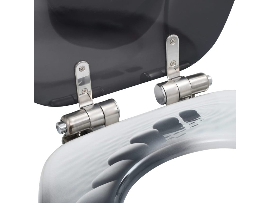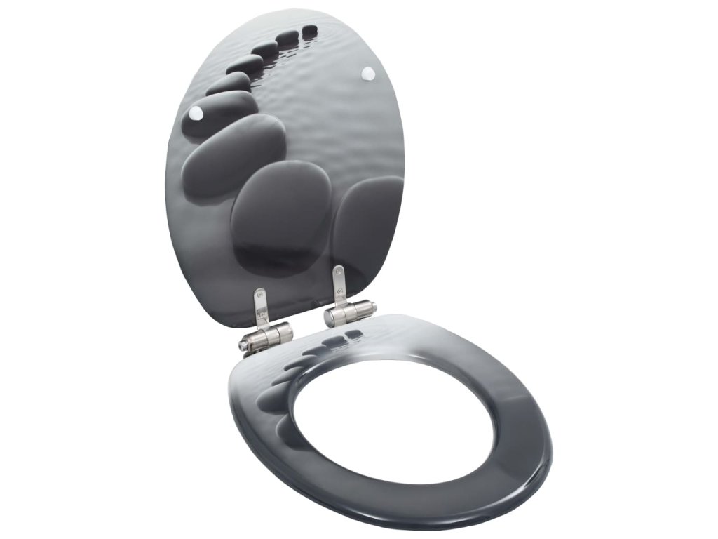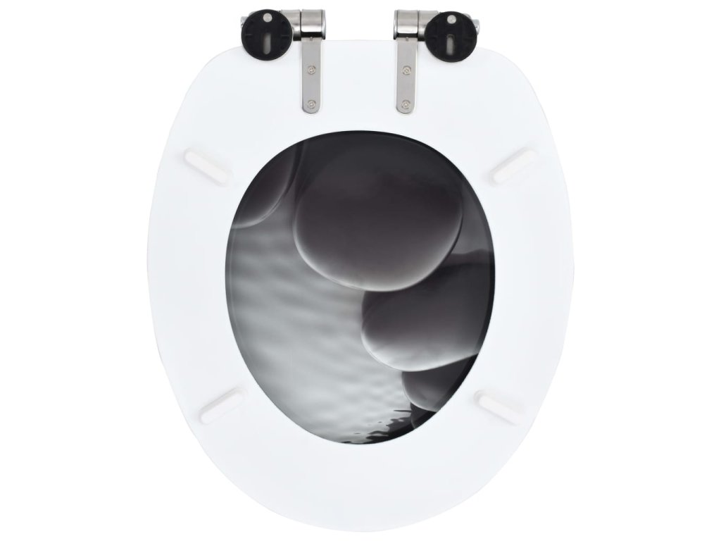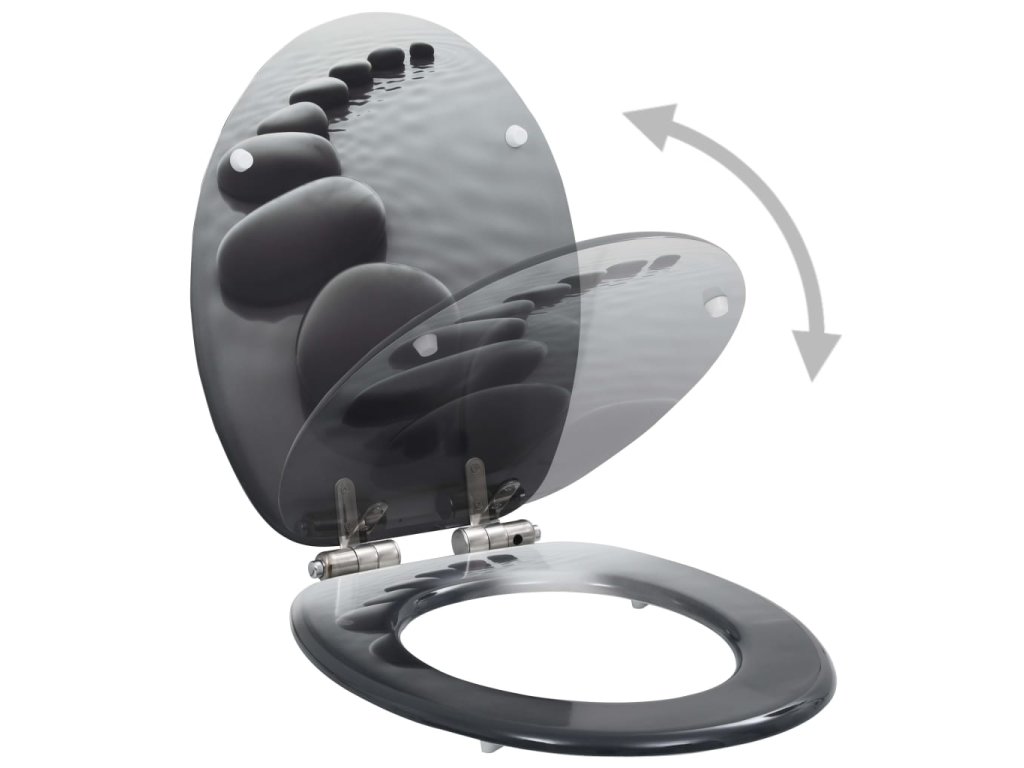 Poklop a sedadlo vyrobené z MDF sú mimoriadne pevné a odolné. Pánty sú vyrobené z extra pevnej zliatiny chrómu a zinku. WC sedadlo je navyše vybavené funkciou pomalého sklápania, a tak sa zatvára a otvára ticho a hladko, aby nebolo počuť zbytočný hluk a aby sa tým predĺžila jeho životnosť.