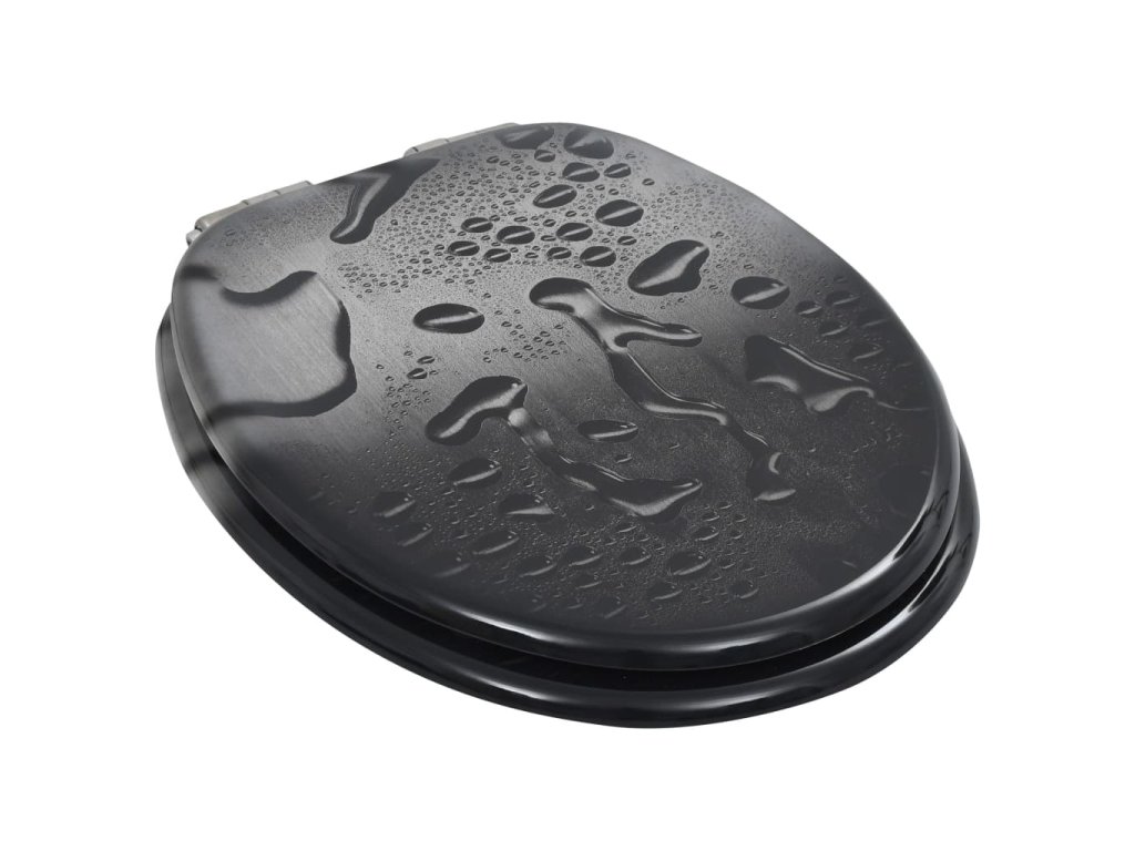 Poklop a sedadlo vyrobené z MDF sú mimoriadne pevné a odolné. Pánty sú vyrobené z extra pevnej zliatiny chrómu a zinku. WC sedadlo je navyše vybavené funkciou pomalého sklápania, a tak sa zatvára a otvára ticho a hladko, aby nebolo počuť zbytočný hluk a aby sa tým predĺžila jeho životnosť.