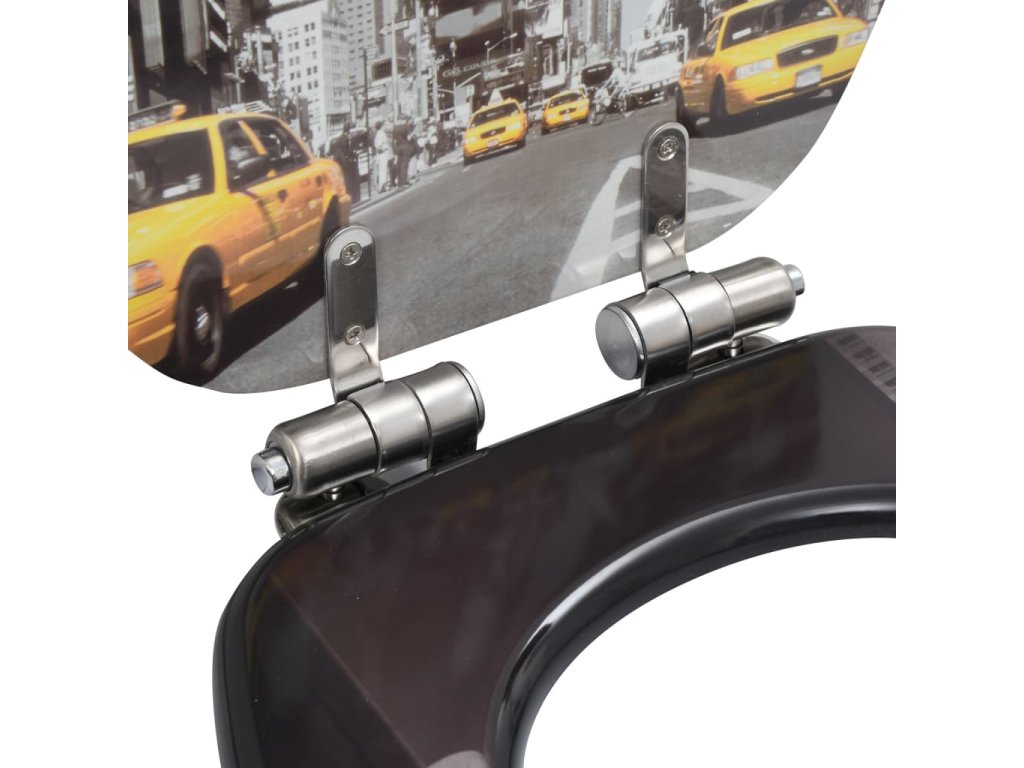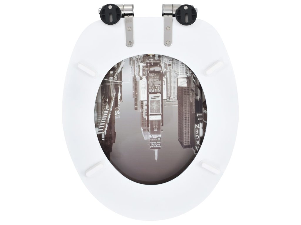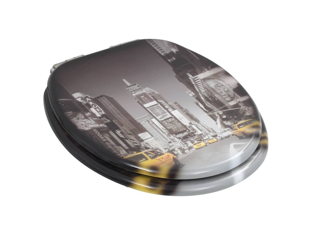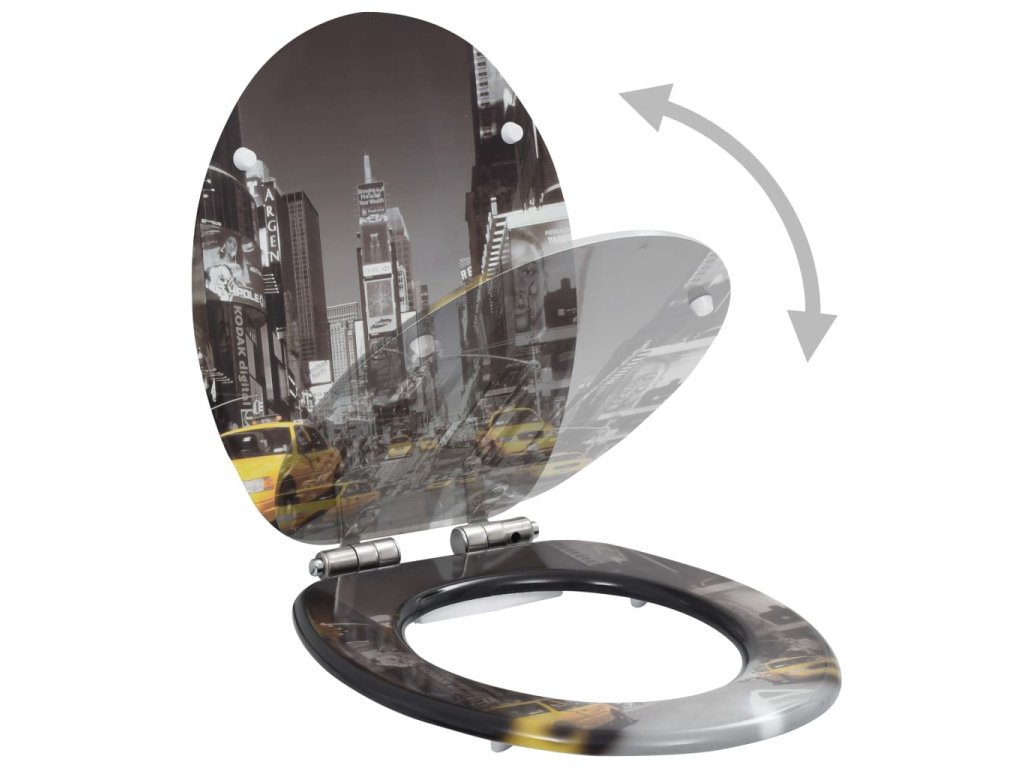 Poklop a sedadlo vyrobené z MDF sú mimoriadne pevné a odolné. Pánty sú vyrobené z extra pevnej zliatiny chrómu a zinku. WC sedadlo je navyše vybavené funkciou pomalého sklápania, a tak sa zatvára a otvára ticho a hladko, aby nebolo počuť zbytočný hluk a aby sa tým predĺžila jeho životnosť.