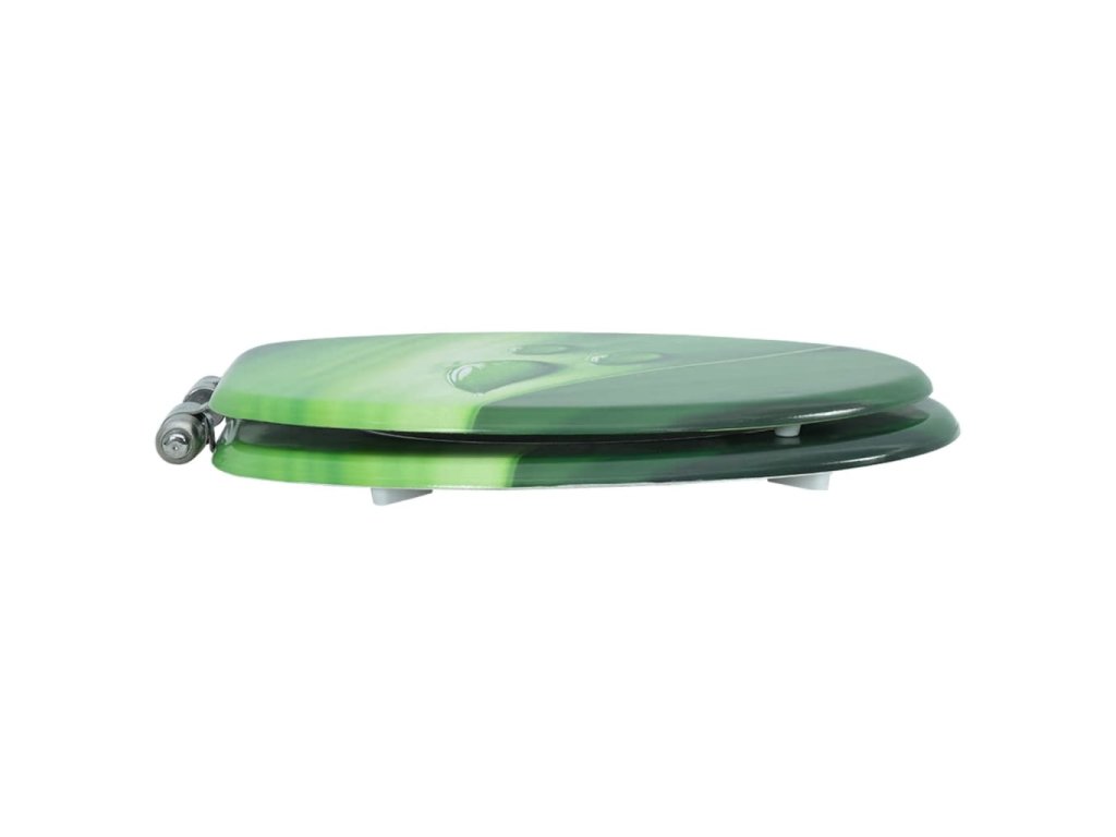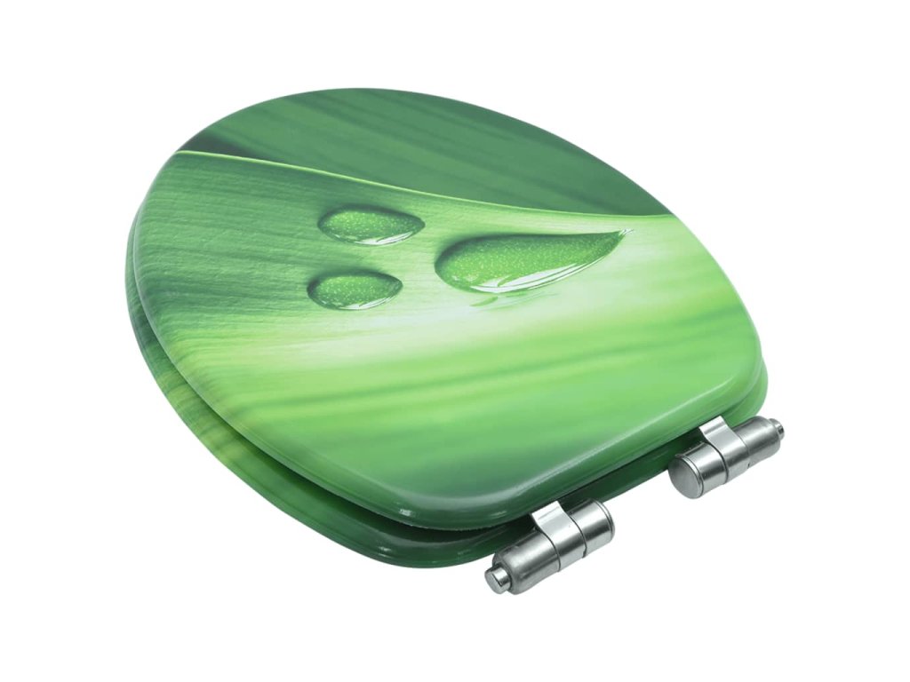 Poklop a sedadlo z MDF sú mimoriadne pevné a odolné. Závesy sú vyrobené z extra silnej chróm-zinkovej zliatiny. Sedadlo má funkciu jemného zatvárania, čo znamená, že sa zatvára pomaly a potichu.