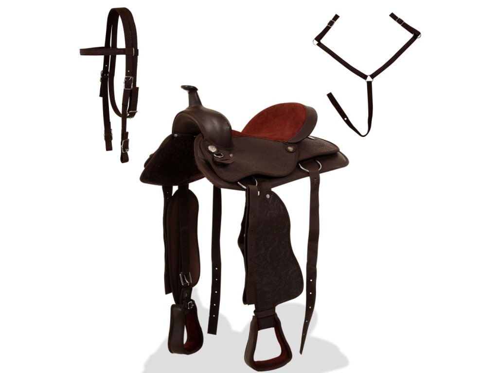 Toto westernové sedlo sa dodáva s ohlávkou a poprsákom.