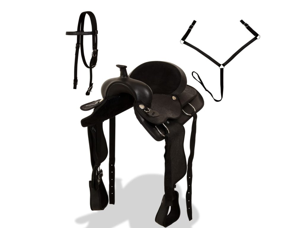 Toto westernové sedlo sa dodáva s ohlávkou a poprsákom.