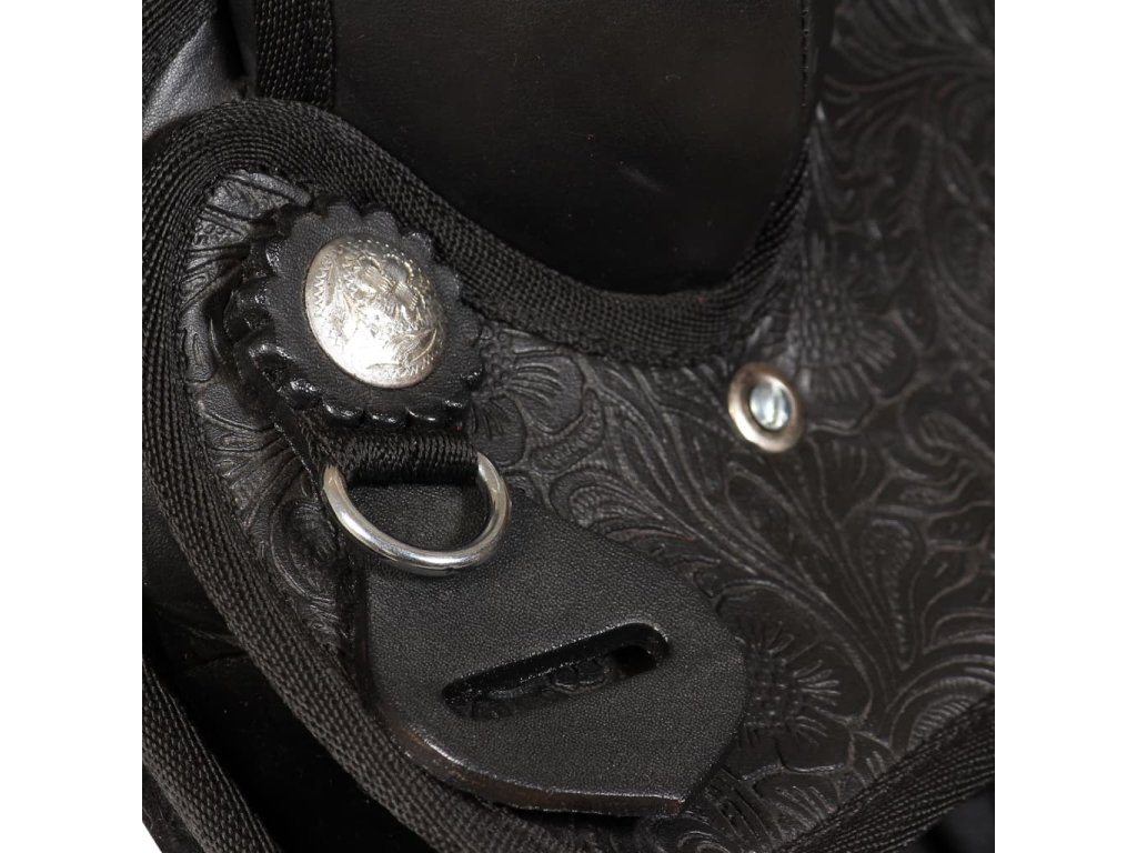 Vysokokvalitná pravá koža a umelá koža je vyzdobená kvetinovým vzorom, čo znamená, že sedlo má nielen funkčnú, ale aj dekoratívnu funkciu. Westernové sedlo je vystužené na všetkých tlakových bodoch pre vyššiu trvácnosť. Kožené strmene, strmeňový remeň a sedlová komora sú robustné a odolné. Toto sedlo je veľmi pohodlné, takže kôň aj jazdec môžu dlhé hodiny jazdiť.