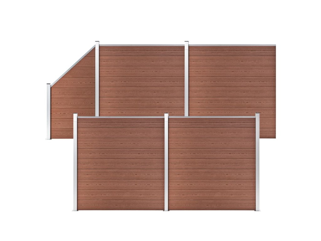 Plot z WPC má na jednej strane potlač dreva a na druhej strane potlač s pravidelným vzorom, takže si môžete vybrať ten dizajn, ktorý sa vám viac páči. Náš drevoplastový panel si nevyžaduje žiadnu ďalšiu úpravu, ako napríklad olejovanie alebo natieranie. Je veľmi trvácny a odolný voči hnilobe alebo hrdzi. Vďaka hliníkovému hornému profilu sa môžu plotové dosky k sebe tesne pripojiť, čo zvyšuje ich pevnosť a odolnosť voči nárazu. Plotové dosky s modulárnym dizajnom sa jednoducho montujú a umožnia vám plot v prípade potreby rozšíriť. Stĺpiky majú tri otvory, aby ste plot mohli zostaviť rôznymi spôsobmi, napríklad v priamej línii (180°), do pravého uhla (90°) alebo do tvaru písmena T. V balení sa nachádza 45 dosiek z WPC, 6 stĺpikov a 5 hliníkových tyčí.