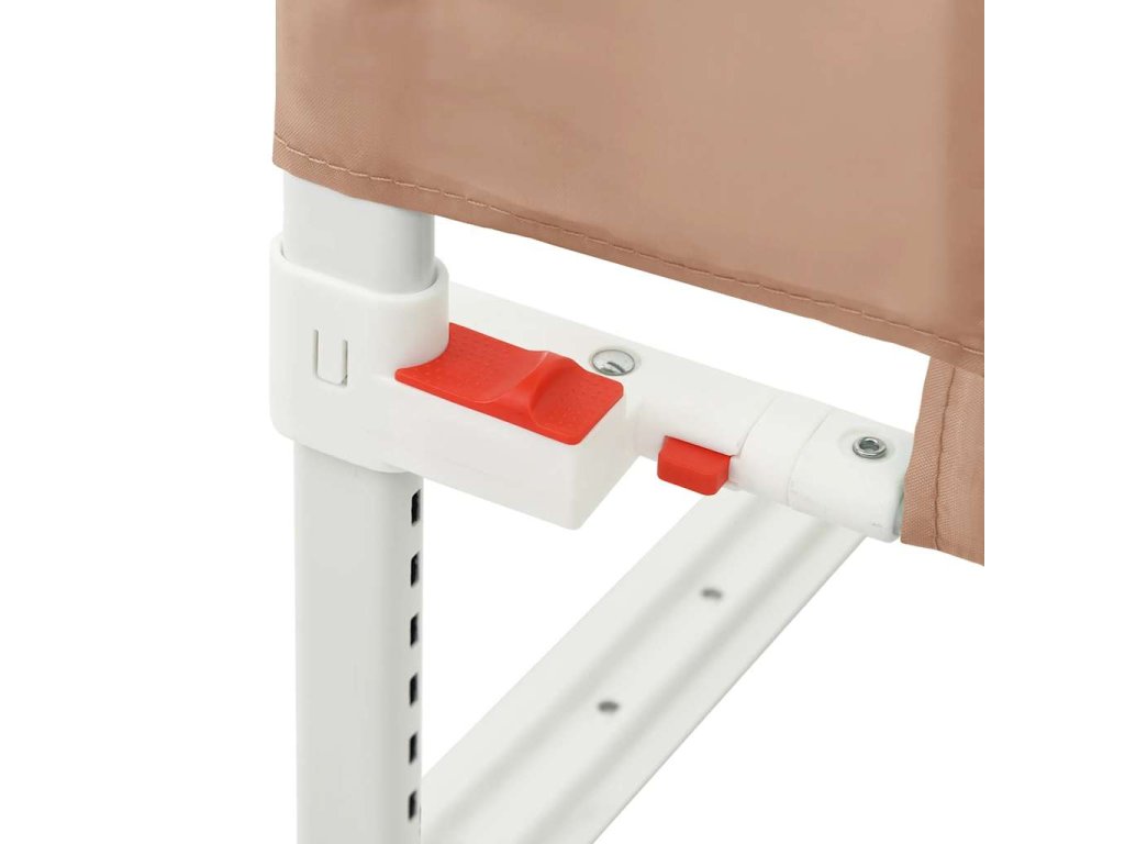 Je vyrobená z umývateľnej a ľahkej kovovej rúrky, takže je pevná, odolná a ľahko sa čistí. Zábrana je vybavená gombíkom na každej strane, čím sa ľahko kombinuje. Okrem toho má zábrana nastaviteľnú výšku, aby ste nastavili tú najbezpečnejšiu polohu. Upozornenie: Táto zábrana je vhodná pre deti vo veku od 18 mesiacov do 5 rokov. Dá sa použiť pre väčšinu postelí s hrúbkou matraca 3-25 cm okrem poschodových postelí, detských postieľok, vodnej postele alebo postele s nafukovacím matracom.