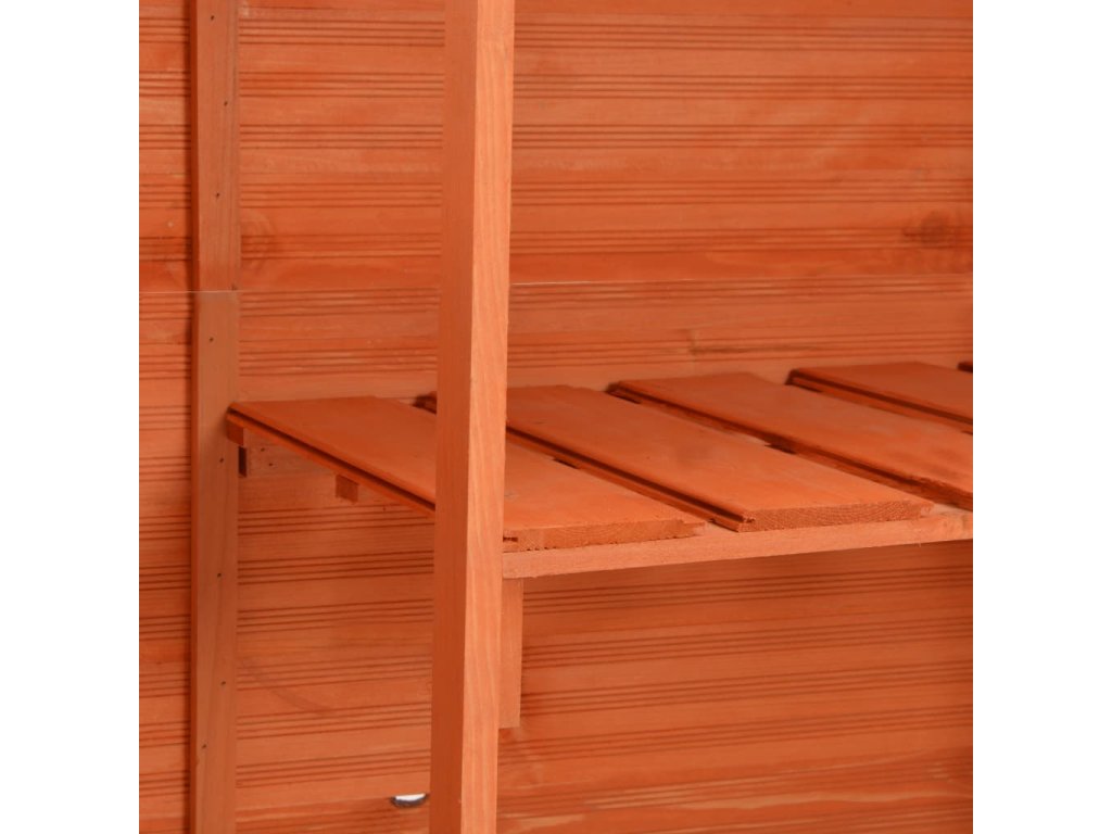 Tento drevený prístrešok na náradie má kompaktný dizajn a elegantný vzhľad, a tak sa bude hodiť do každej záhrady. Skladovací prístrešok poskytuje dostatok úložného priestoru na rôzne druhy náradia a ďalšieho vybavenia.