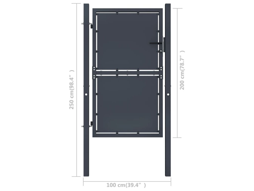 Záhradná brána je vyrobená z ocele, ktorá zaručuje vynikajúcu trvácnosť a stabilitu a vďaka pevnej konštrukcii je mimoriadne robustná. Naša záhradná brána navyše poskytuje optimálnu bezpečnosť a súkromie, a zároveň vytvára pôsobivý vstup na pozemok. Brána sa dodáva spolu s dvoma pevnými stĺpikmi a robustnými pántmi pre jednoduchú inštaláciu.