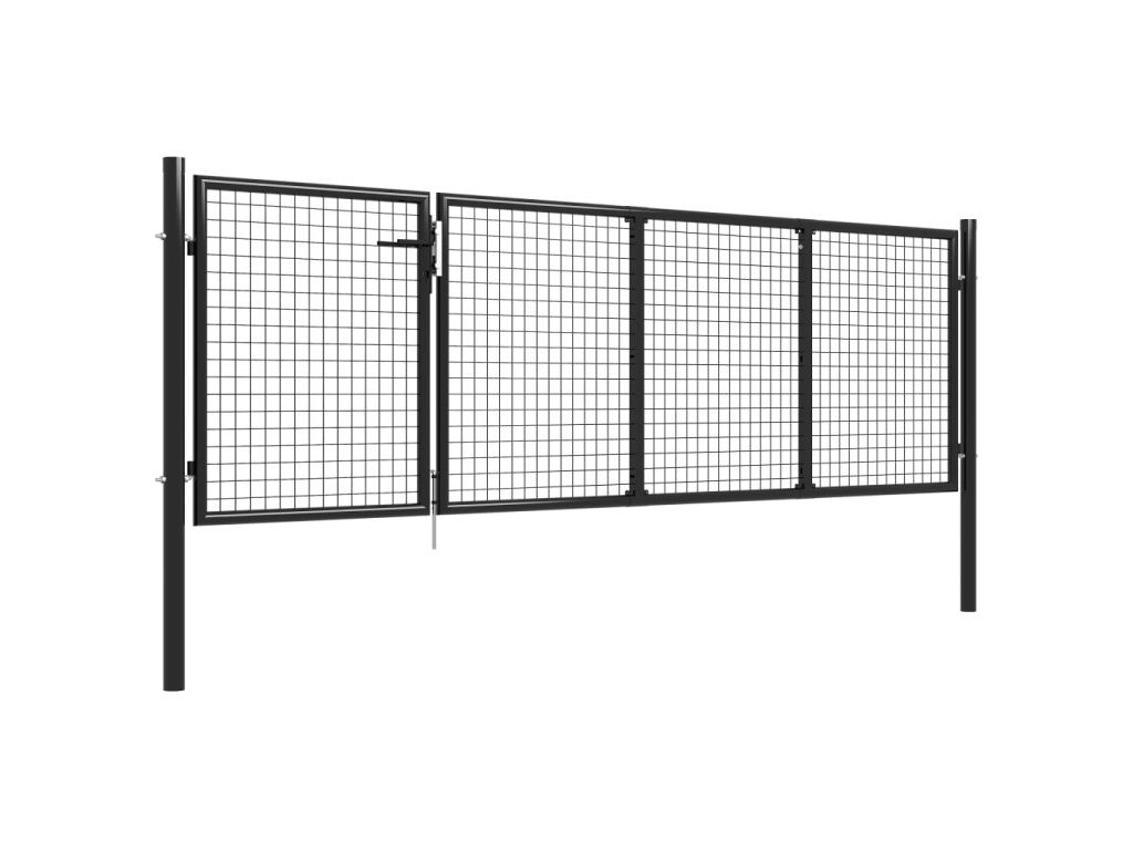 Táto robustná a trvácna záhradná brána je vyrobená z pevnej ocele. Odoláva hrdzi a korózii, a tak je vhodná na dlhodobé používanie v exteriéri. Záhradná brána je tvorená hrubými zváranými drôtmi, ktoré jej dodávajú mimoriadnu pevnosť, vďaka čomu poskytuje optimálnu bezpečnosť a súkromie a zároveň vytvára pôsobivý vstup na pozemok.