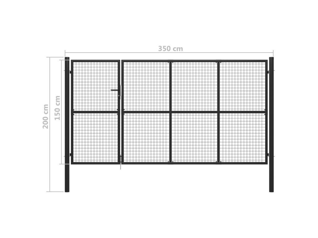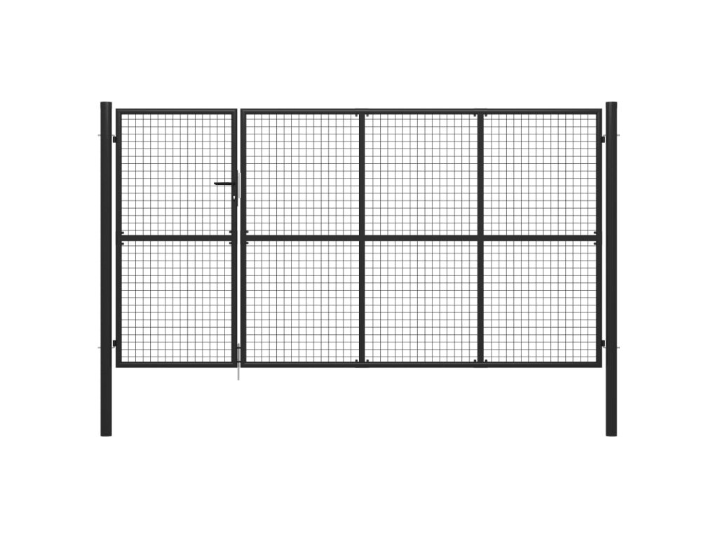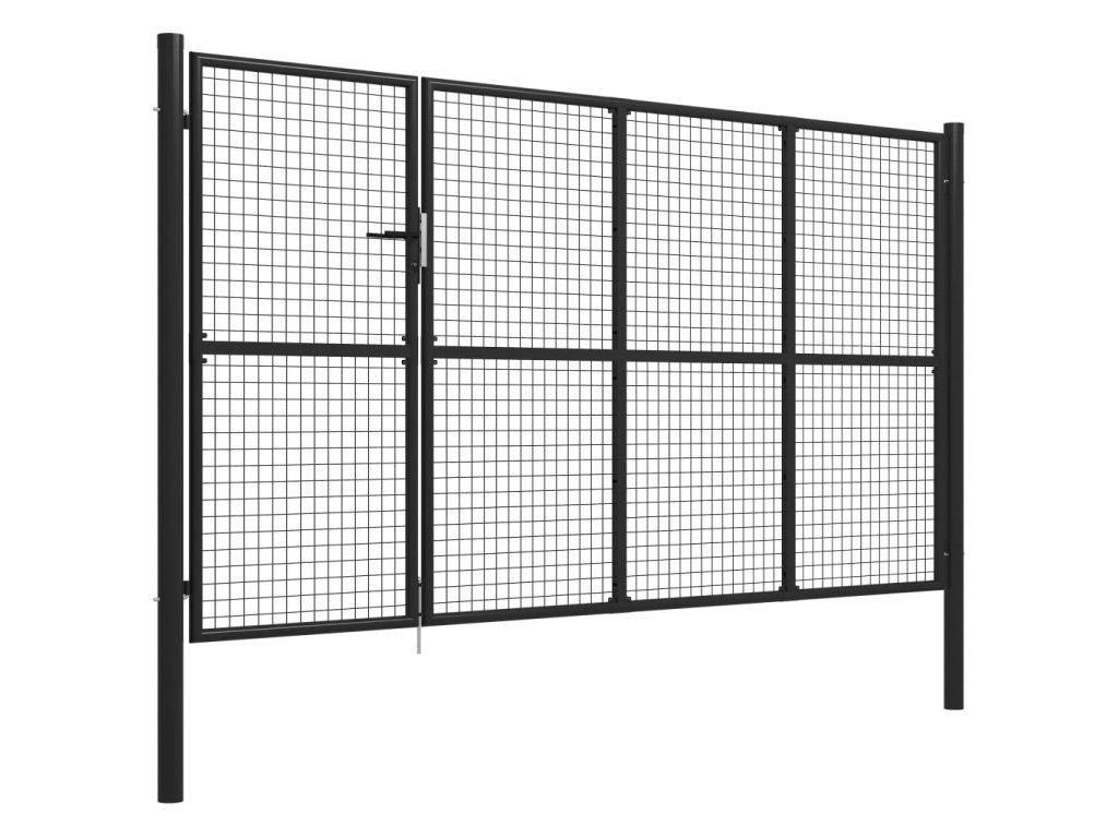 Táto robustná a trvácna záhradná brána je vyrobená z pevnej ocele. Odoláva hrdzi a korózii, a tak je vhodná na dlhodobé používanie v exteriéri. Záhradná brána je tvorená hrubými zváranými drôtmi, ktoré jej dodávajú mimoriadnu pevnosť, vďaka čomu poskytuje optimálnu bezpečnosť a súkromie a zároveň vytvára pôsobivý vstup na pozemok.