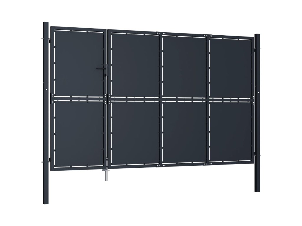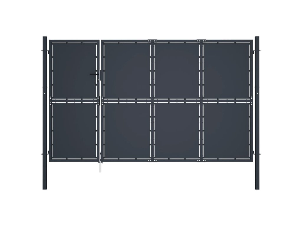 Záhradná brána je vyrobená z ocele, ktorá zaručuje vynikajúcu trvácnosť a stabilitu a vďaka pevnej konštrukcii je mimoriadne robustná. Naša záhradná brána navyše poskytuje optimálnu bezpečnosť a súkromie, a zároveň vytvára pôsobivý vstup na pozemok. Brána sa dodáva spolu s dvoma pevnými stĺpikmi a robustnými pántmi pre jednoduchú inštaláciu.
