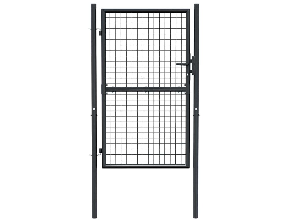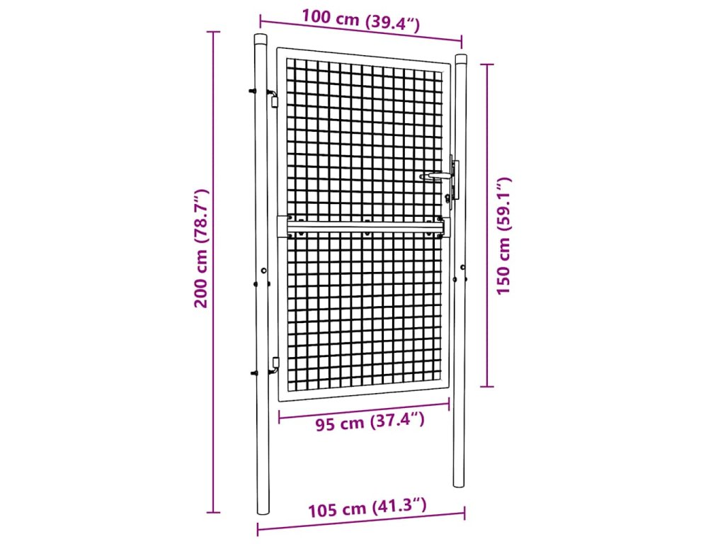 Záhradná brána je kvalitne vyhotovená a vyrobená z pozinkovanej ocele s práškovou povrchovou úpravou, ktorá je odolná voči hrdzi a vytvára pevnú konštrukciu. Má dva bočné stĺpiky s pántmi pre jednoduchú inštaláciu.