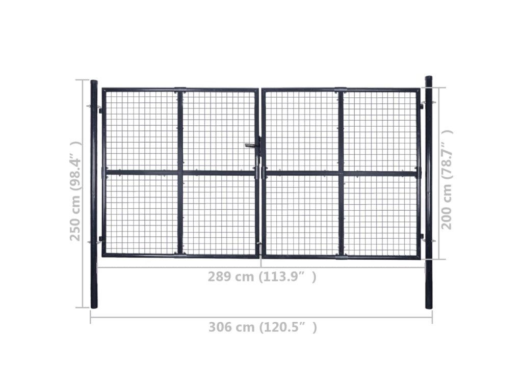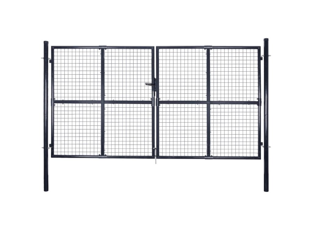 Záhradná brána je kvalitne vyhotovená a vyrobená z pozinkovanej ocele s práškovou povrchovou úpravou, ktorá je odolná voči hrdzi a vytvára pevnú konštrukciu. Má dva bočné stĺpiky s pántmi pre jednoduchú inštaláciu. Je vybavená kolíkom na upevnenie veľkého spodného čapu, aby sa brána dala bezpečne uzamknúť.