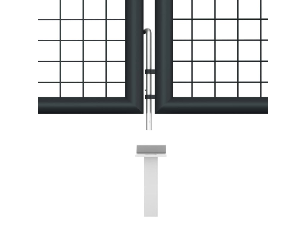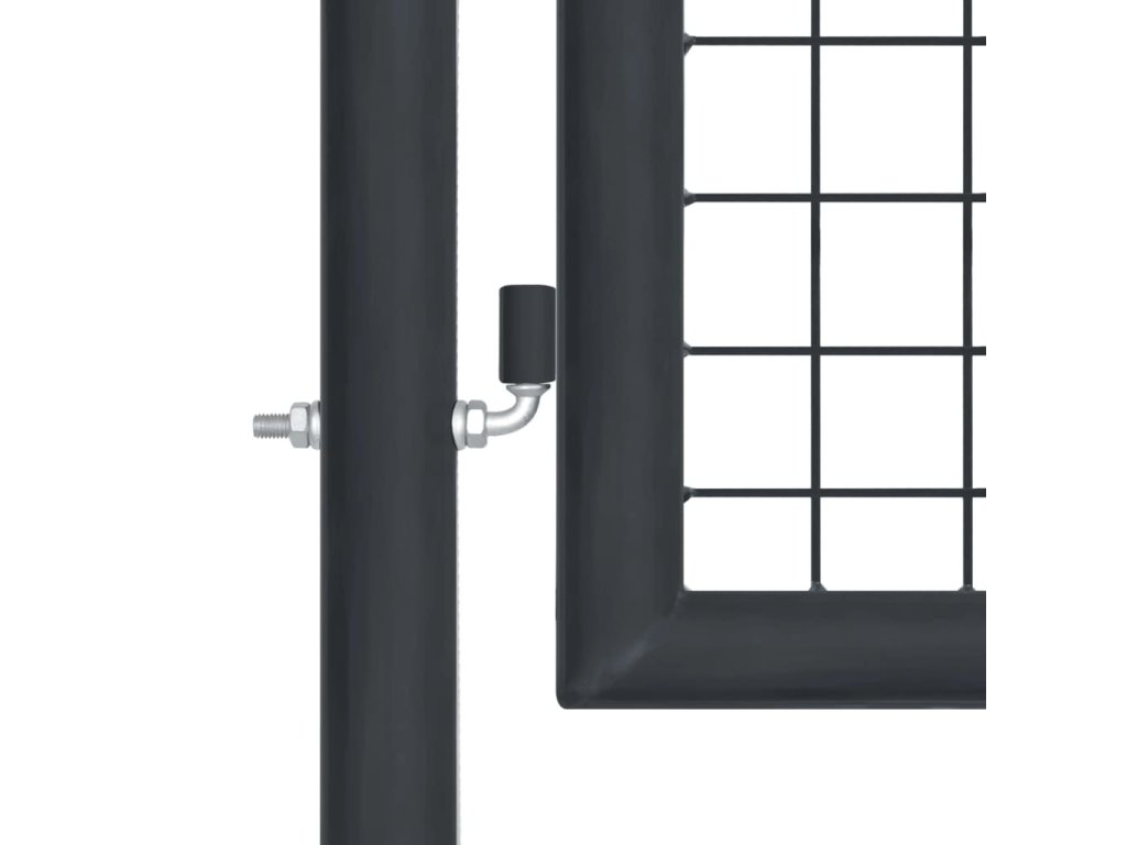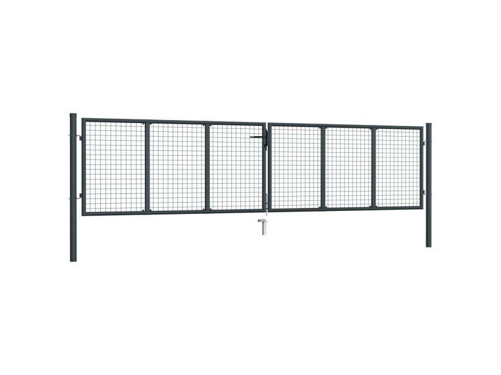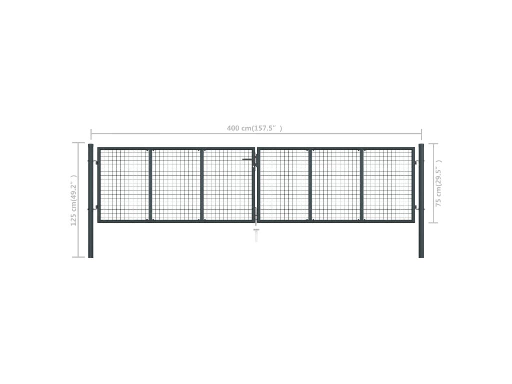 Záhradná brána je kvalitne vyhotovená a vyrobená z pozinkovanej ocele s práškovou povrchovou úpravou, ktorá je odolná voči hrdzi a vytvára pevnú konštrukciu. Má dva bočné stĺpiky s pántmi pre jednoduchú inštaláciu. Je vybavená kolíkom na upevnenie veľkého spodného čapu, aby sa brána dala bezpečne uzamknúť.