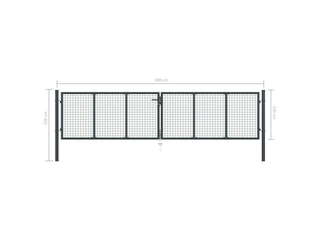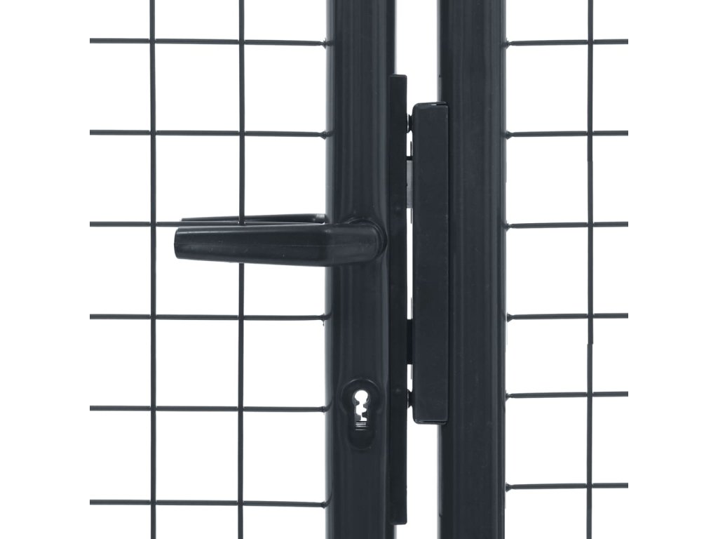 Záhradná brána je kvalitne vyhotovená a vyrobená z pozinkovanej ocele s práškovou povrchovou úpravou, ktorá je odolná voči hrdzi a vytvára pevnú konštrukciu. Má dva bočné stĺpiky s pántmi pre jednoduchú inštaláciu. Je vybavená kolíkom na upevnenie veľkého spodného čapu, aby sa brána dala bezpečne uzamknúť.