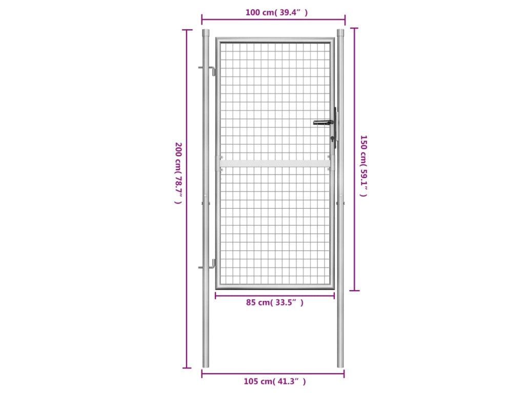 Záhradná brána je tvorená hrubými zváranými vertikálnymi a horizontálnymi drôtmi, ktoré jej dodávajú mimoriadnu pevnosť, vďaka čomu poskytuje optimálnu bezpečnosť a súkromie a zároveň vytvára pôsobivý vstup na pozemok. Brána je vyrobená z pozinkovanej ocele, ktorá je odolná voči hrdzi a korózii. Brána sa navyše dodáva spolu s robustnými pántmi a súčasťou balenia je aj odolný uzamykací systém s 3 kľúčmi. Brána sa jednoducho montuje.