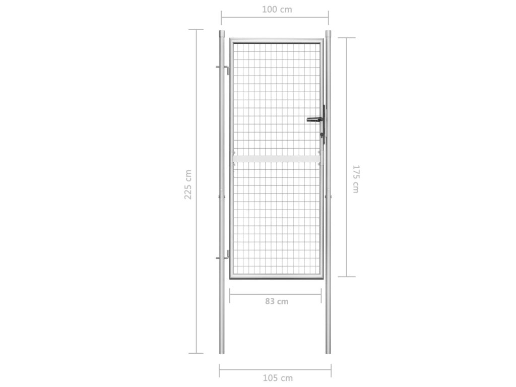 Záhradná brána je tvorená hrubými zváranými vertikálnymi a horizontálnymi drôtmi, ktoré jej dodávajú mimoriadnu pevnosť, vďaka čomu poskytuje optimálnu bezpečnosť a súkromie a zároveň vytvára pôsobivý vstup na pozemok. Brána je vyrobená z pozinkovanej ocele, ktorá je odolná voči hrdzi a korózii. Brána sa navyše dodáva spolu s robustnými pántmi a súčasťou balenia je aj odolný uzamykací systém s 3 kľúčmi. Brána sa jednoducho montuje.