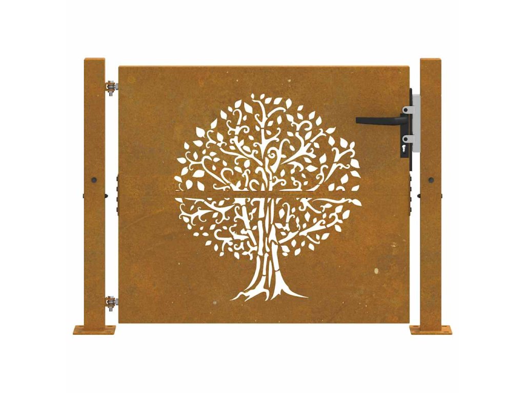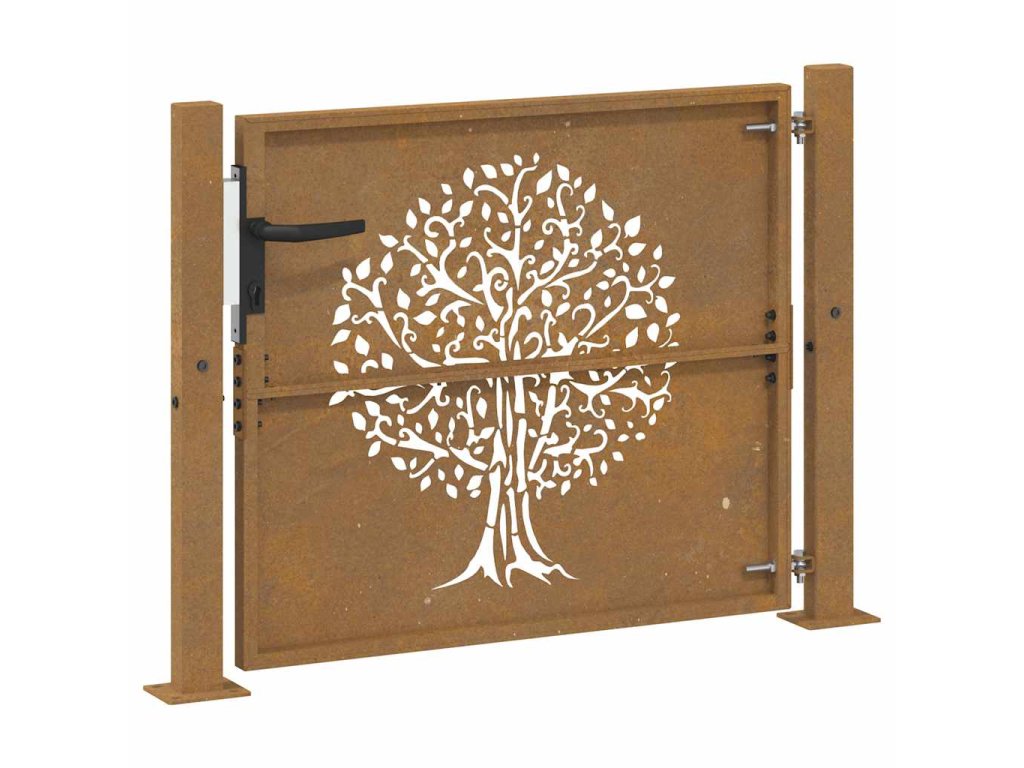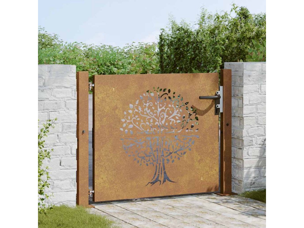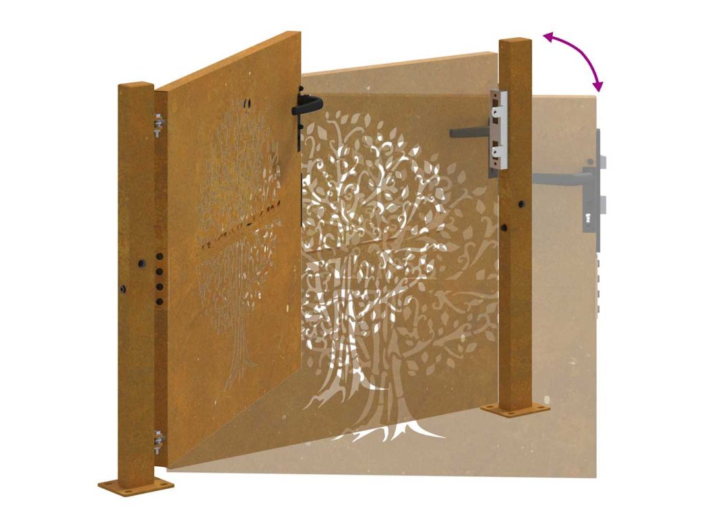 - Odolný materiál: Kovová brána je vyrobená z kortenovej ocele. Kortenová oceľ, tiež známa ako oceľ odolná voči poveternostným vplyvom. Je vo svojej podstate antikorózna. Pri prvom vystavení atmosférickým podmienkam sa na nej vytvorí hrdzavá vrstva, ktorá chráni pred koróziou. Preto ju nemusíte natierať. Vďaka tomu ušetríte náklady na údržbu a opravy. Výrazný hnedý odtieň cortenovej ocele zaručene upúta pozornosť. Poveternostne odolná oceľ je mimoriadne trvácna a obstojí v skúške časom.