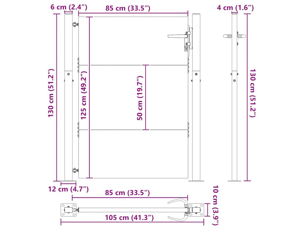 - Stabilná základňa: 4 montážne otvory v základni stĺpika brány vám umožňujú pripevniť ho k zemi pre väčšiu stabilitu.