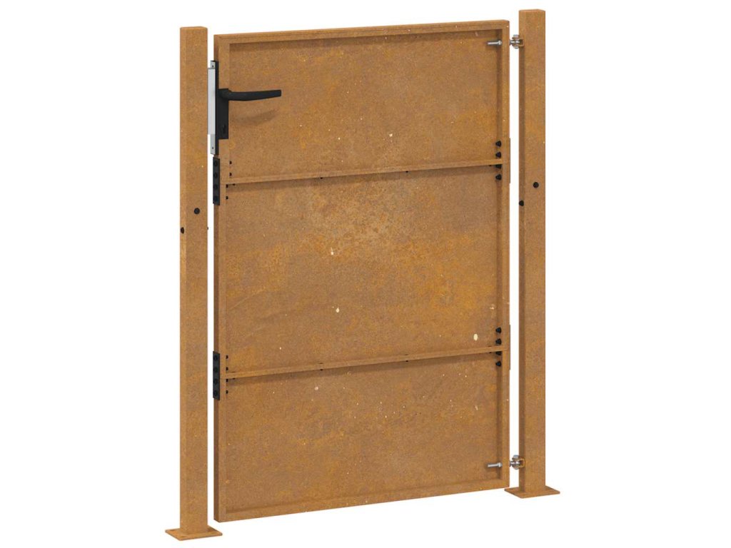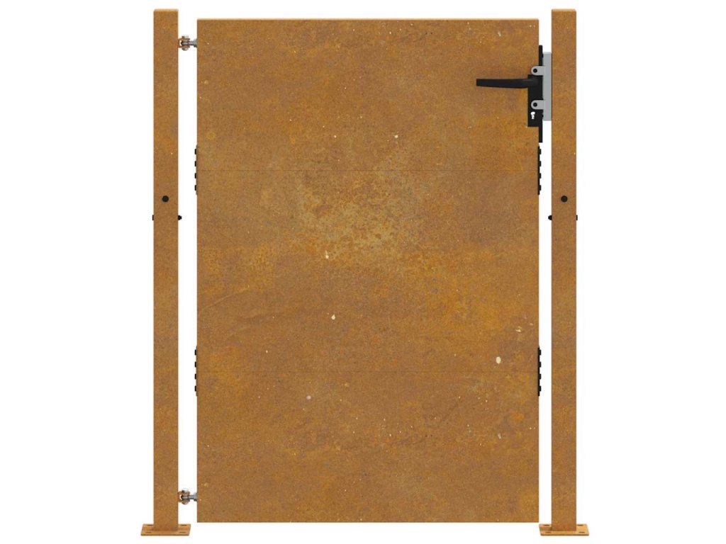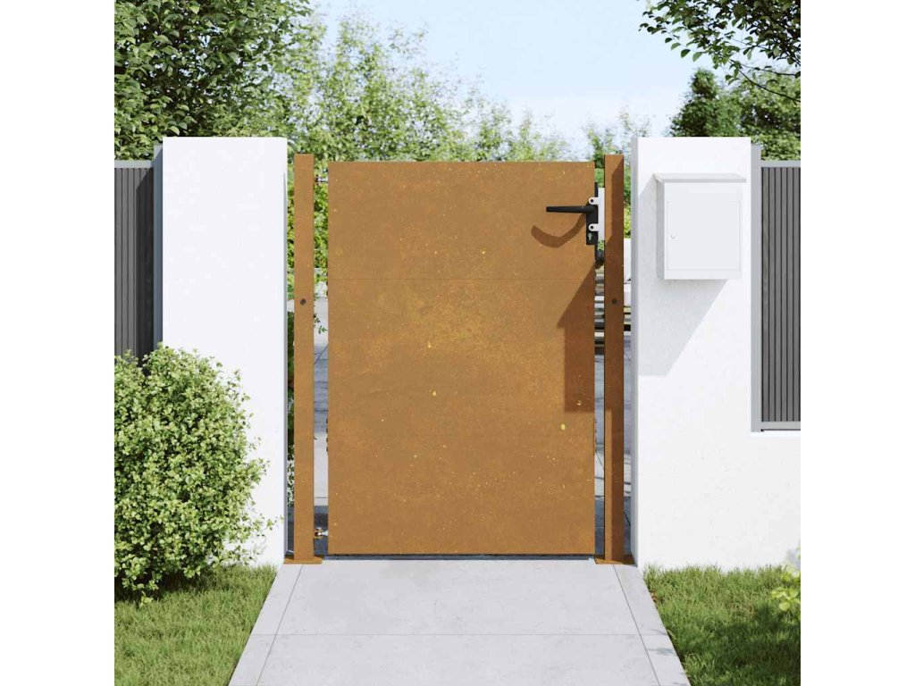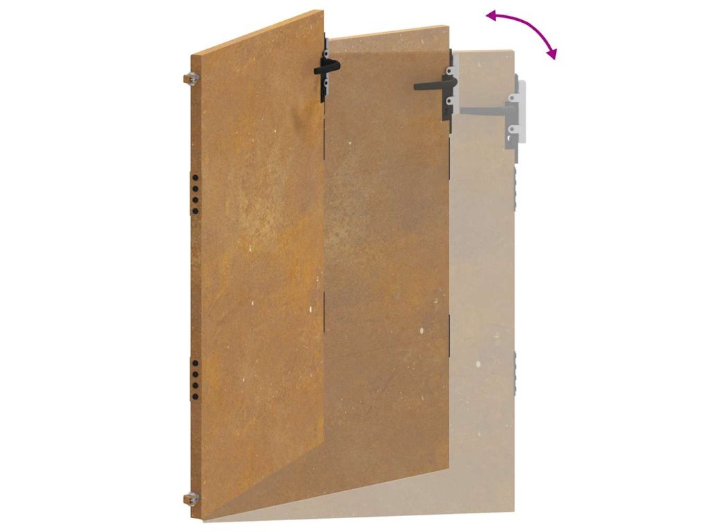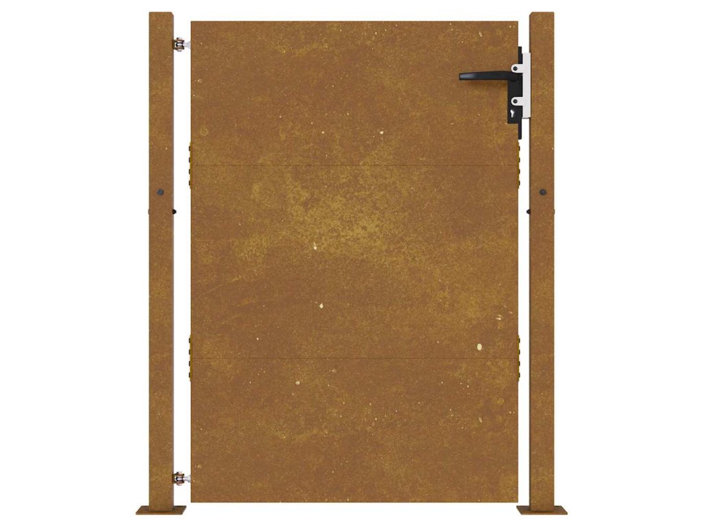 - Odolný materiál: Kovová brána je vyrobená z kortenovej ocele. Kortenová oceľ, tiež známa ako oceľ odolná voči poveternostným vplyvom. Je vo svojej podstate antikorózna. Pri prvom vystavení atmosférickým podmienkam sa na nej vytvorí hrdzavá vrstva, ktorá chráni pred koróziou. Preto ju nemusíte natierať. Vďaka tomu ušetríte náklady na údržbu a opravy. Výrazný hnedý odtieň cortenovej ocele zaručene upúta pozornosť. Poveternostne odolná oceľ je mimoriadne trvácna a obstojí v skúške časom.