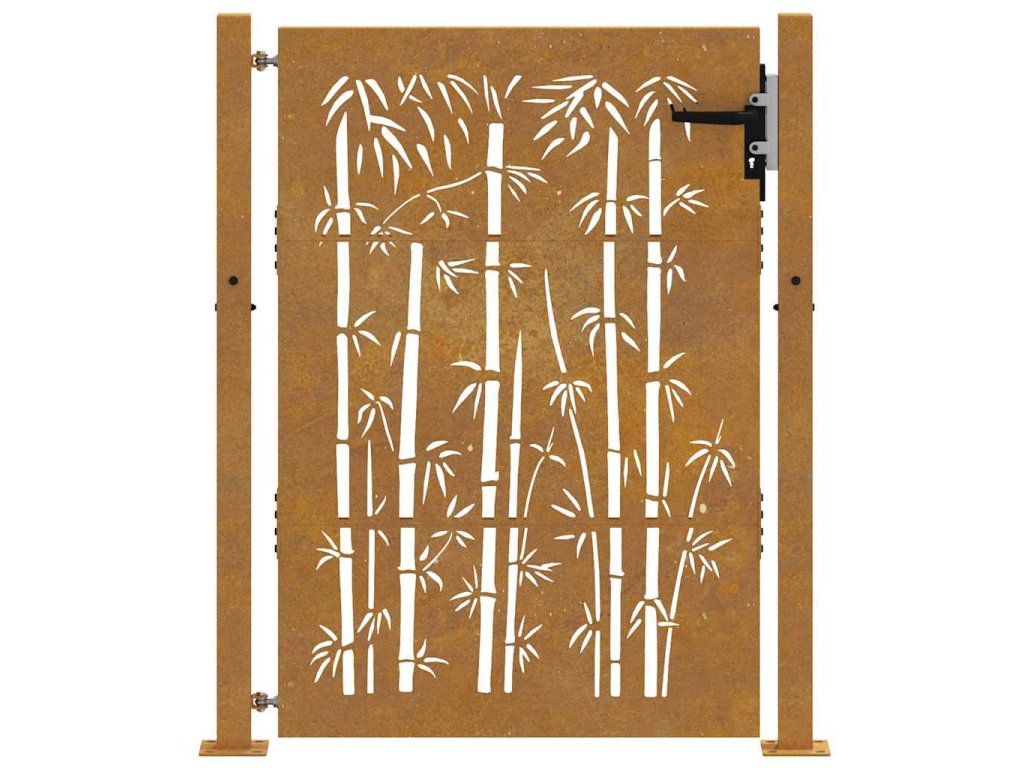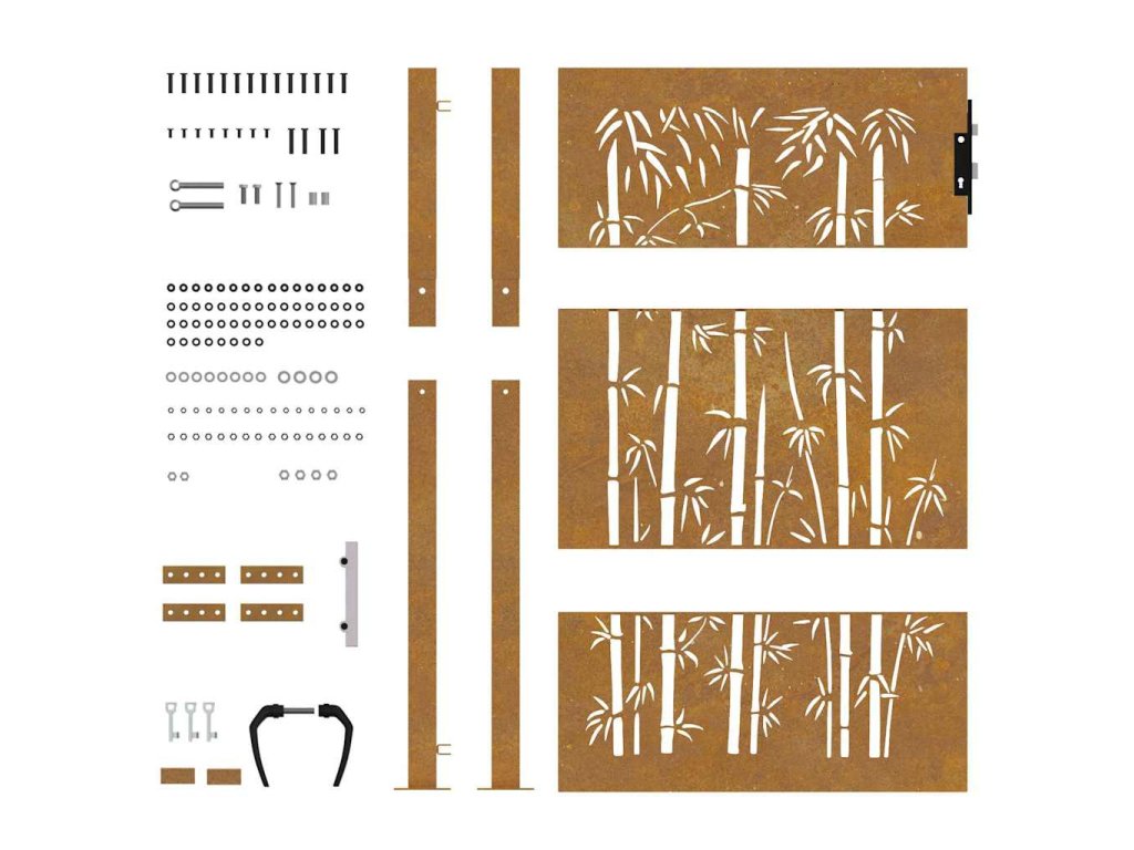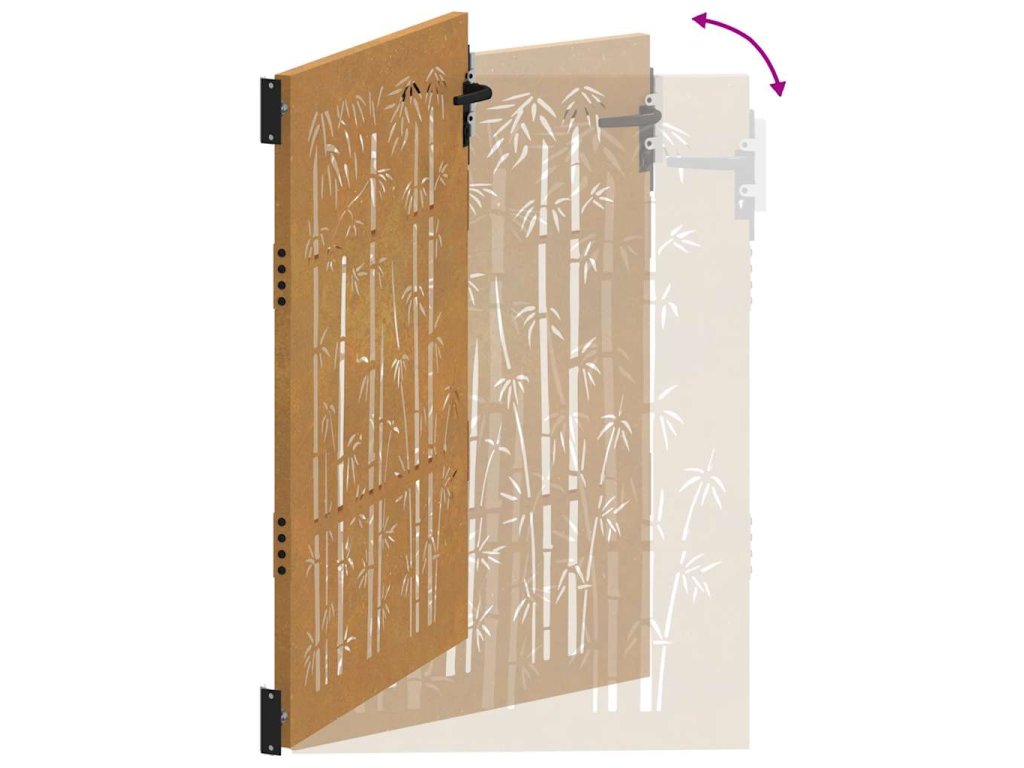 - Odolný materiál: Kovová brána je vyrobená z kortenovej ocele. Kortenová oceľ, tiež známa ako oceľ odolná voči poveternostným vplyvom. Je vo svojej podstate antikorózna. Pri prvom vystavení atmosférickým podmienkam sa na nej vytvorí hrdzavá vrstva, ktorá chráni pred koróziou. Preto ju nemusíte natierať. Vďaka tomu ušetríte náklady na údržbu a opravy. Výrazný hnedý odtieň cortenovej ocele zaručene upúta pozornosť. Poveternostne odolná oceľ je mimoriadne trvácna a obstojí v skúške časom.