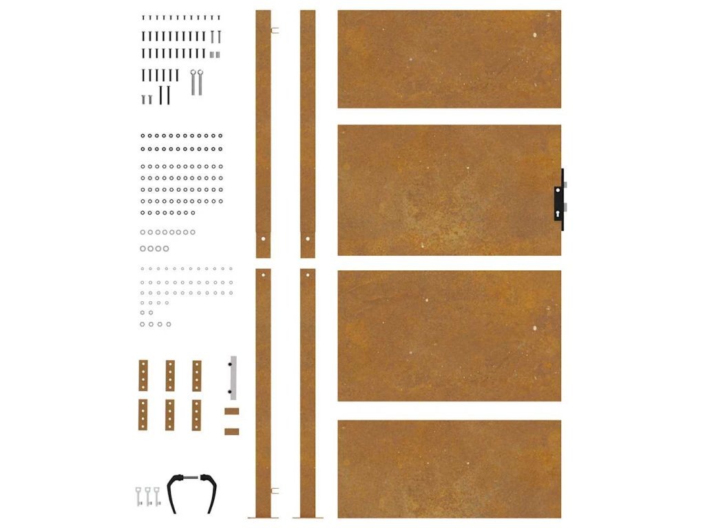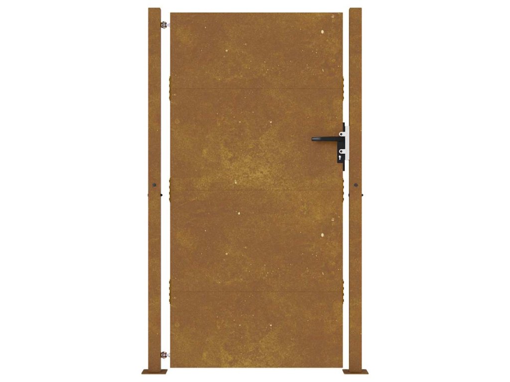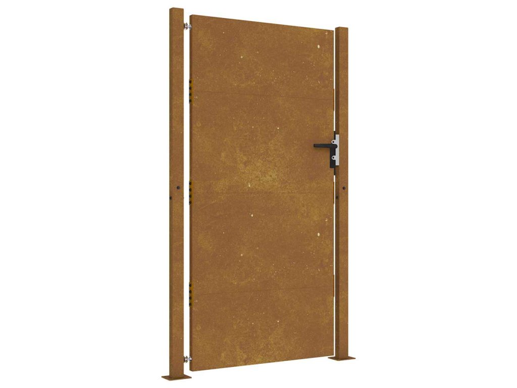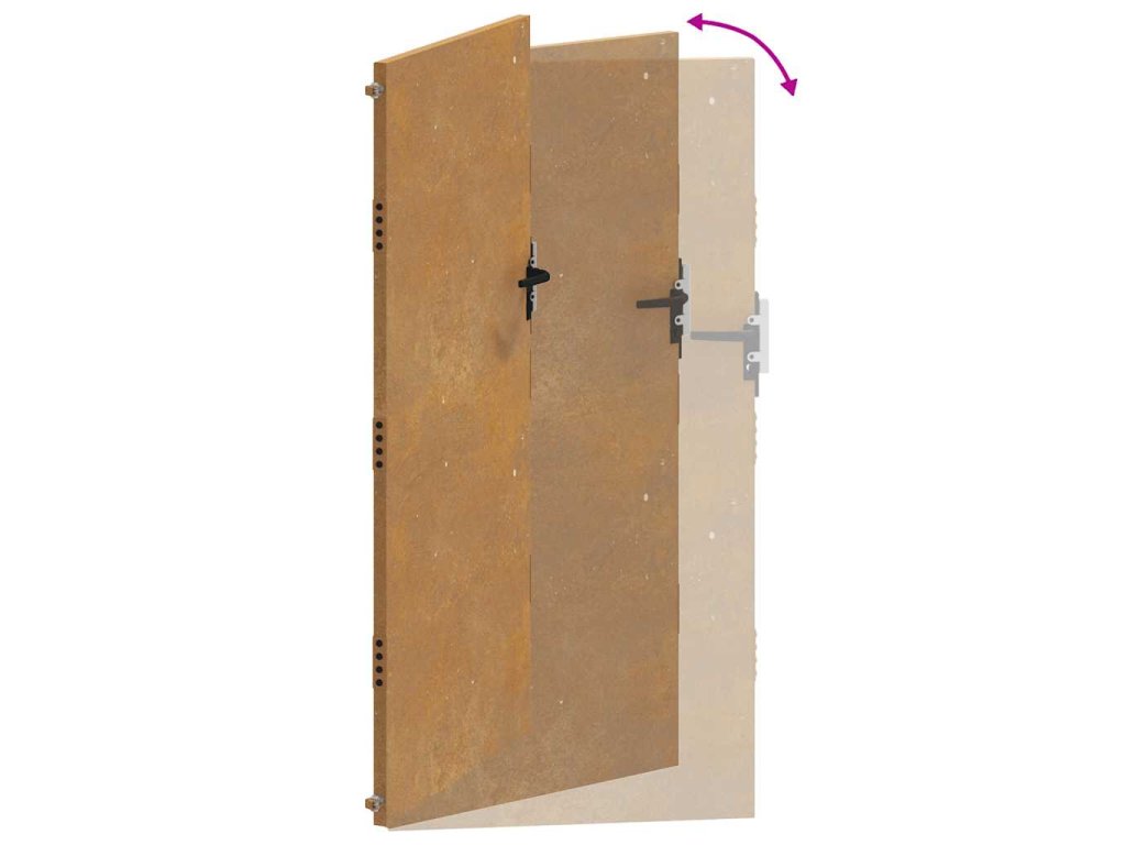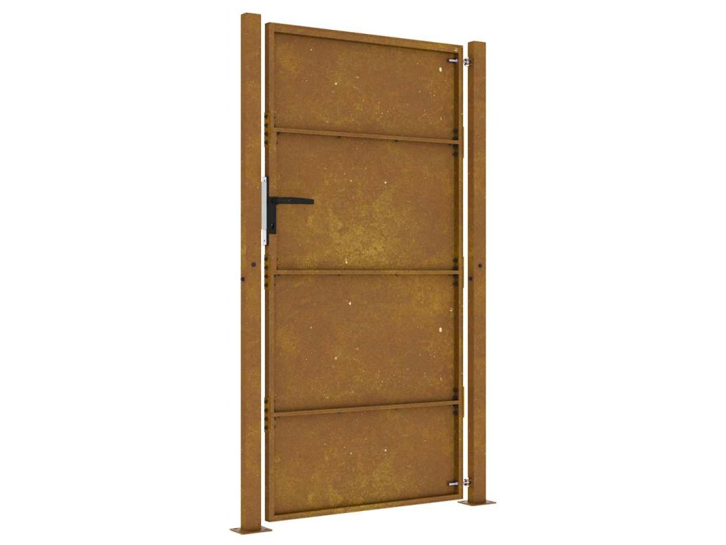 - Odolný materiál: Kovová brána je vyrobená z kortenovej ocele. Kortenová oceľ, tiež známa ako oceľ odolná voči poveternostným vplyvom. Je vo svojej podstate antikorózna. Pri prvom vystavení atmosférickým podmienkam sa na nej vytvorí hrdzavá vrstva, ktorá chráni pred koróziou. Preto ju nemusíte natierať. Vďaka tomu ušetríte náklady na údržbu a opravy. Výrazný hnedý odtieň cortenovej ocele zaručene upúta pozornosť. Poveternostne odolná oceľ je mimoriadne trvácna a obstojí v skúške časom.