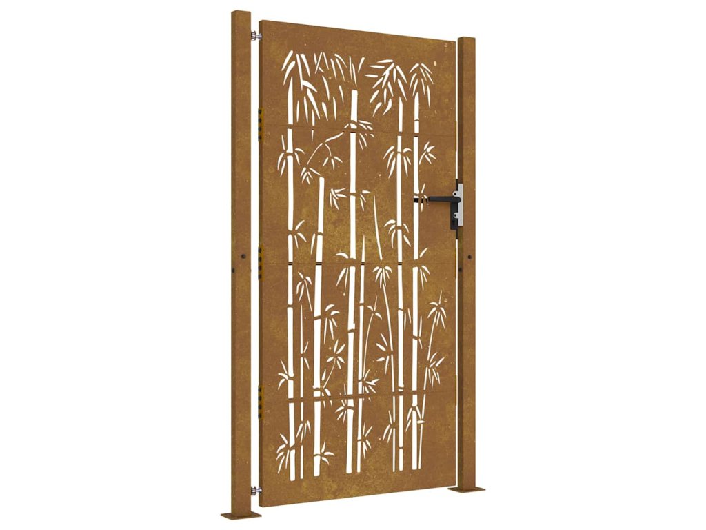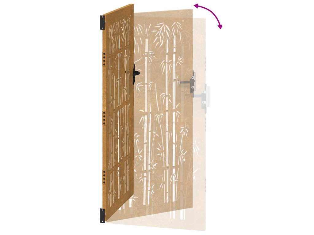 - Odolný materiál: Kovová brána je vyrobená z kortenovej ocele. Kortenová oceľ, tiež známa ako oceľ odolná voči poveternostným vplyvom. Je vo svojej podstate antikorózna. Pri prvom vystavení atmosférickým podmienkam sa na nej vytvorí hrdzavá vrstva, ktorá chráni pred koróziou. Preto ju nemusíte natierať. Vďaka tomu ušetríte náklady na údržbu a opravy. Výrazný hnedý odtieň cortenovej ocele zaručene upúta pozornosť. Poveternostne odolná oceľ je mimoriadne trvácna a obstojí v skúške časom.